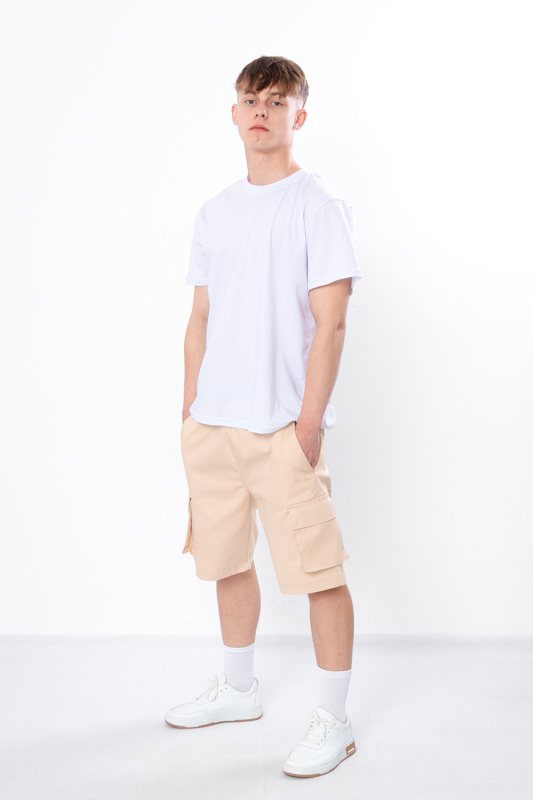 Бриджі-карго чоловічі - це одяг, який поєднує в собі стиль карго (з кишенями на боках, що нагадують військові штани) зі стилем бриджів (що мають короткий крій і зафіксовані манжети). Відрізняються своїм практичним дизайном та функціональністю. Бриджі мають декілька кишень та широкий пояс на резинці. Пошиті з однотонного котонового полотна. Вони ідеально підходять для подорожей, походів, занять спортом, риболовлі, а також для повсякденного носіння, де потрібний великий обсяг кишень для зручності.