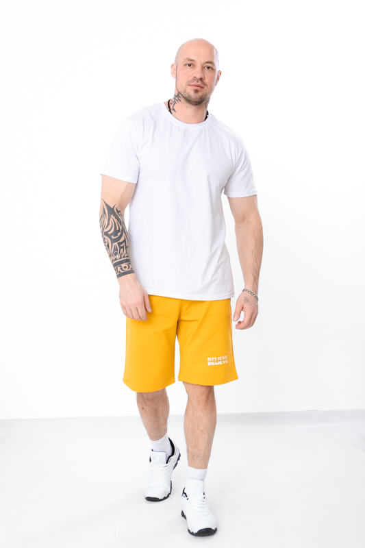 Чоловічі бриджі виконані з трикотажного полотна - двонитка. Модель вільного крою, довжиною до коліна, має широкий притачний пояс з куліскою, затягується до необхідної довжини і має бічні кишені. Даний предмет гардеробу ідеально поєднується з футболками, майками, безрукавками. Спортивні бриджі можна буде носити не тільки на тренування, але і в повсякденному житті. Вони виглядають красиво, візуально збільшуючи мускулатуру ніг.