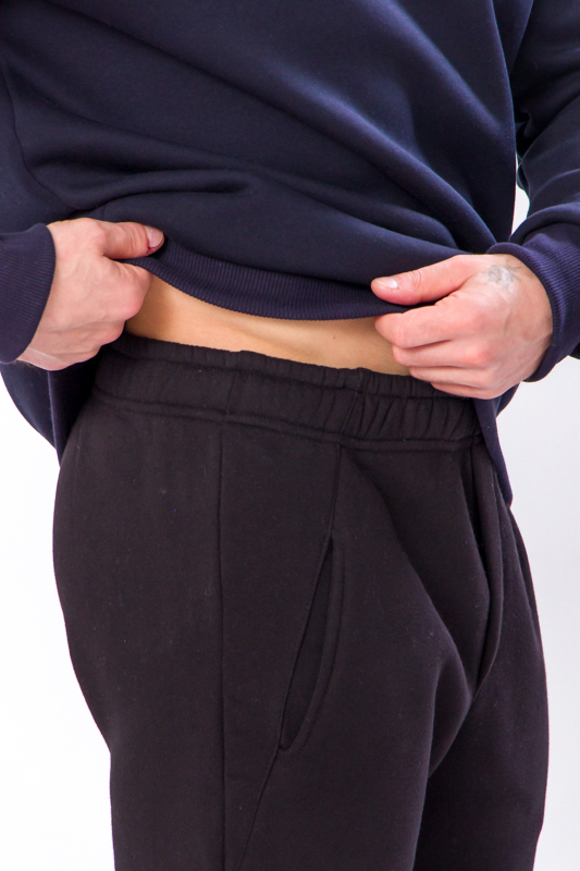 Штани чоловічі з щільного трикотажного полотна - трьохнитка. Модель вільно сидить по всій довжині і прилягає в області щиколотки. Пояс на резинці забезпечує комфортну посадку, а звужений донизу крій підкреслюютє сучасний стиль. Анатомічний крій моделі, зручна посадка, бічні кишені робить їх ідеальними для прогулянок, подорожей і активного відпочинку. Штани добре виглядають як з повсякденним взуттям в стилі casual, так і зі спортивним взуттям. При правильному догляді вони не сідають і не линяють!