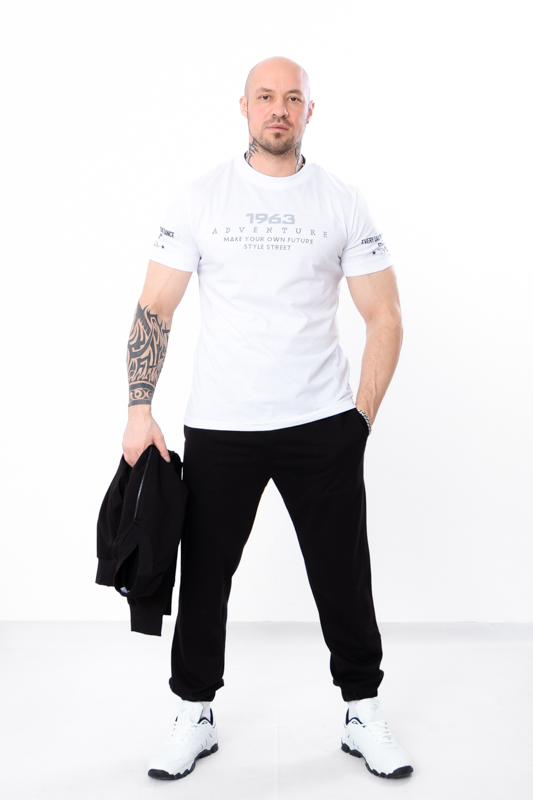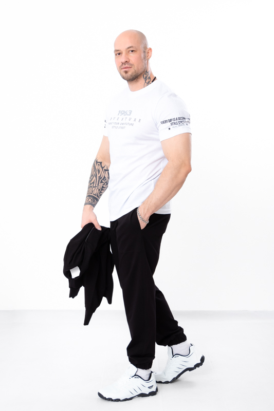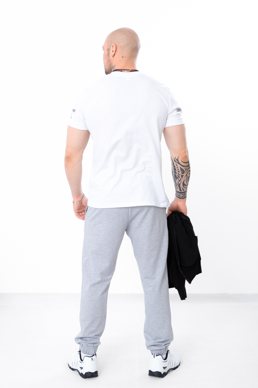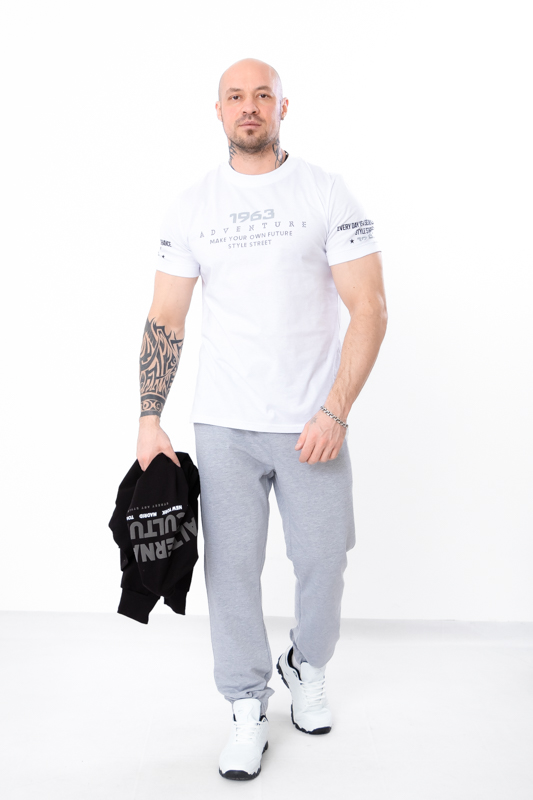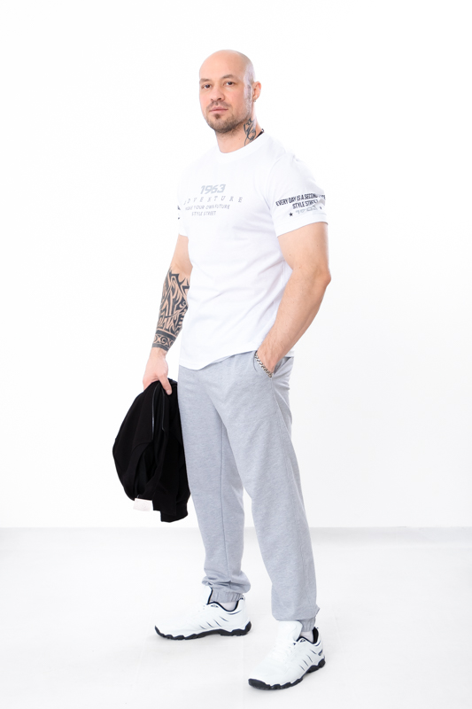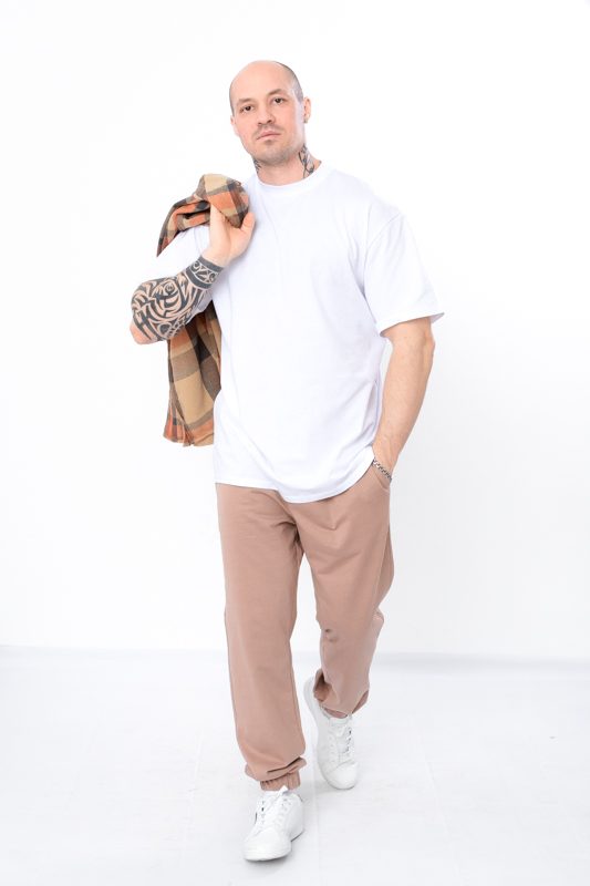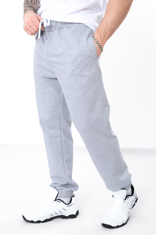 Базові спортивні чоловічі штани пошиті із однотонної двонитки. Штани прямого вільного крою, пояс на широкій резинці зі шнурком, по бокам є кишені. Знизу на штанинах манжети на резинці. Така модель чудово поєднується з футболками, худі, джемперами та спортивними кофтами. Доповнити образ можна кедами або кросівками. Полотно гарної якості. Тому, при правильному догляді, штани можна буде носити не один сезон. Може давати усадку після прання.