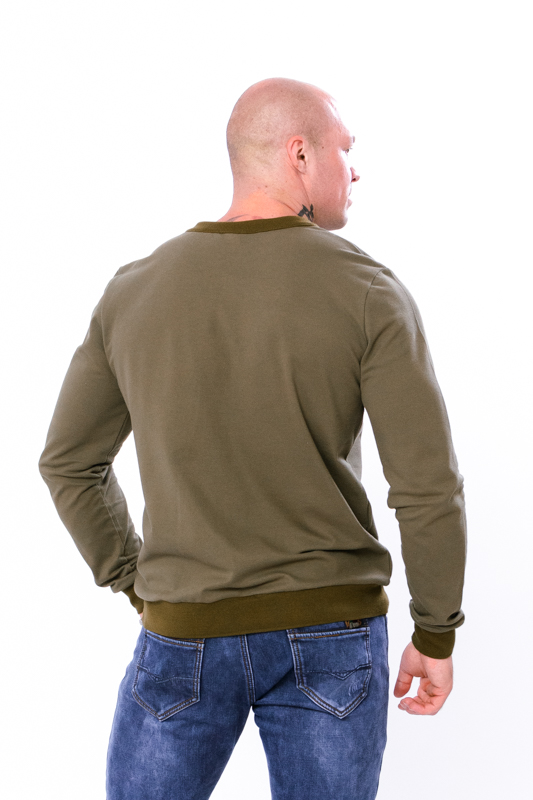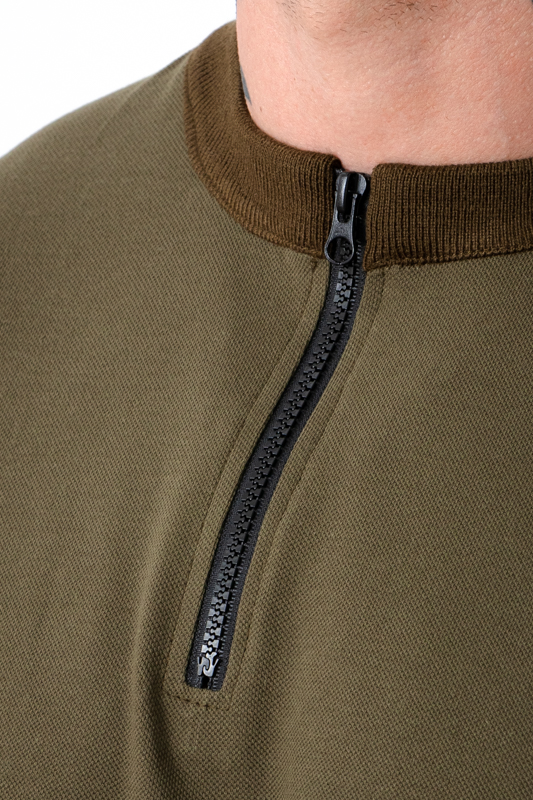Джемпер з довгим рукавом прямого крою, пошит з полотна – лакоста. Дане полотно міцне та здатне зберігати форму. Комір та манжети на рукавах і по низу джемпера виконані з щільного в'язаного полотна. Є невелика блискавка спереду. Джемпер чудово поєднується з джинсами, брюками. Добре тримає форму, не деформується після прання.