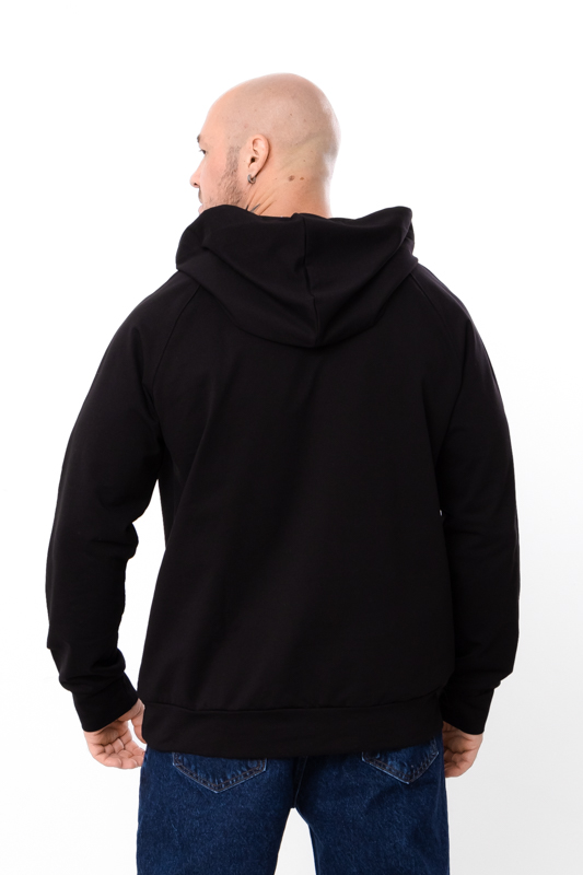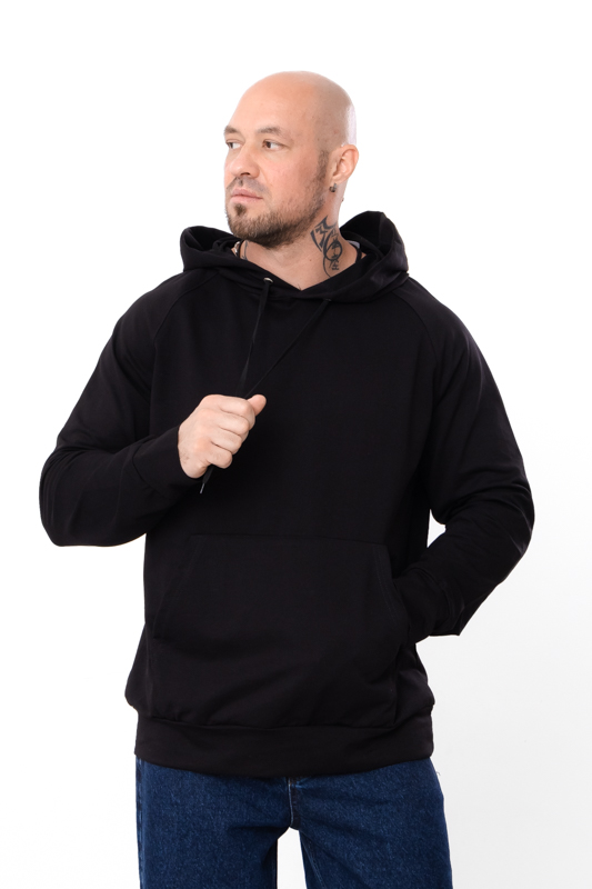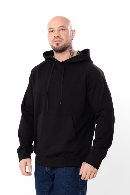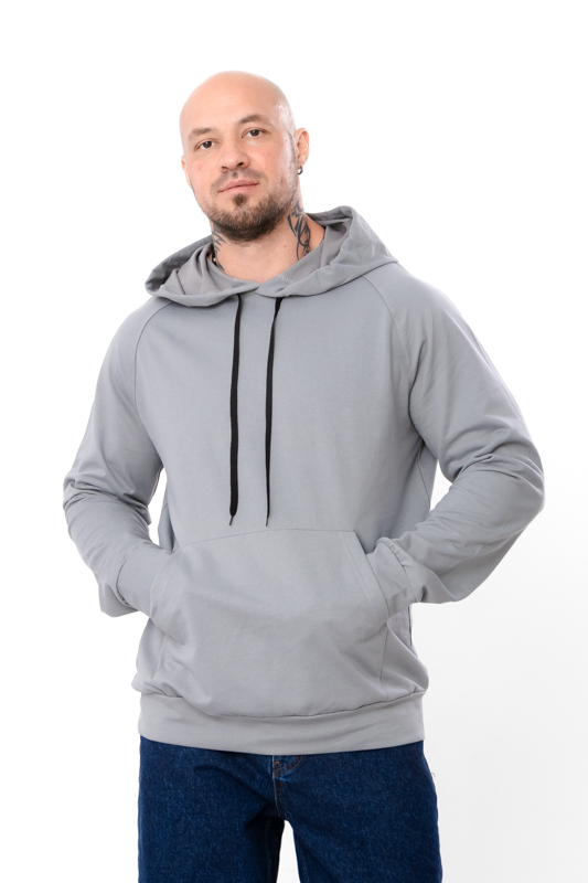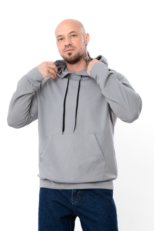 Спортивне худі для чоловіків вільного крою з капюшоном, пошито з однотонної двонитки. Спереду є кишеня "кенгуру". Манжети на рукавах і по низу худі виконані з еластичного полотна. Капюшон має шнурок для затягування. Худі чудово поєднується з джинсами або спортивними штанами. Пошитий в декількох кольорах на будь-який смак. Полотно гарної якості. Тому, при правильному догляді, виріб можна буде носити не один сезон. Може давати усадку після прання.