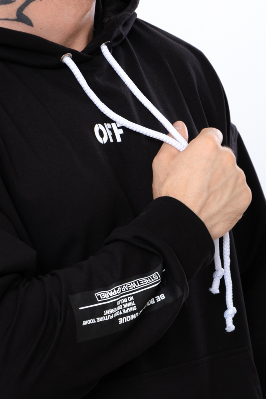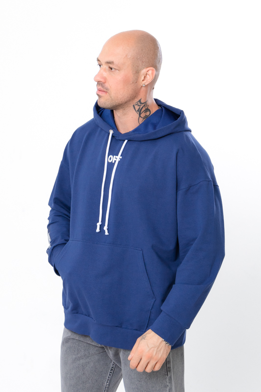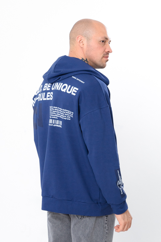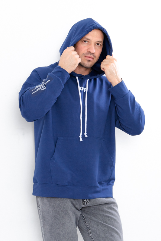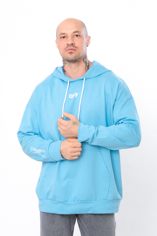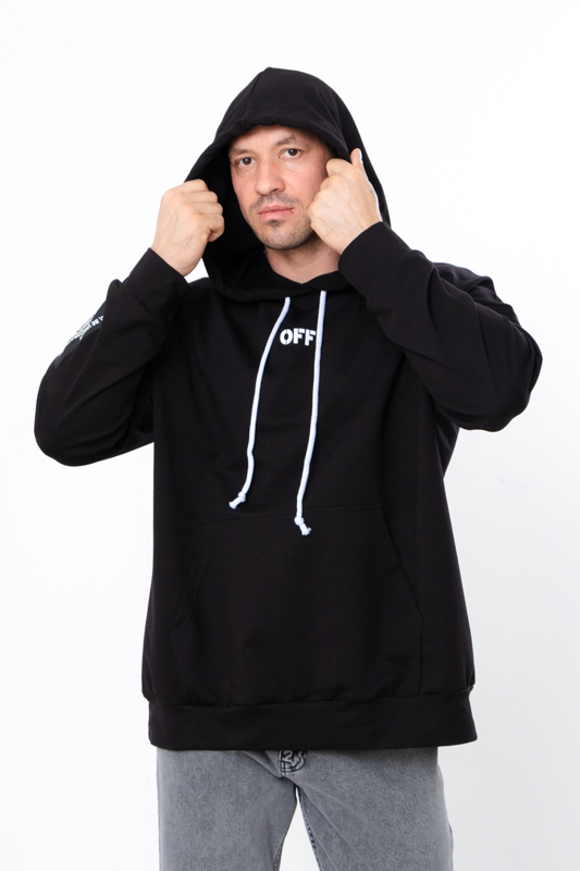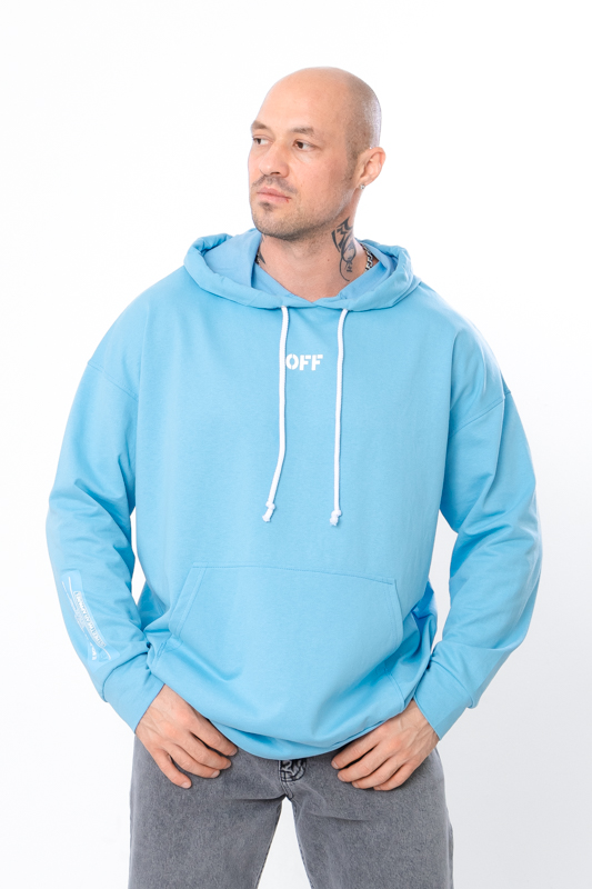 Спортивне худі для чоловіків вільного крою з капюшоном, пошито з однотонної двонитки. Спереду є кишеня "кенгуру". Манжети на рукавах і по низу худі виконані з еластичного полотна. Капюшон має шнурок для затягування. На спині, а також на рукавах і спереду нанесений стильний малюнок. Худі чудово поєднується з джинсами або спортивними штанами. Пошитий в декількох кольорах на будь-який смак. Полотно гарної якості. Тому, при правильному догляді, виріб можна буде носити не один сезон. Може давати усадку після прання.