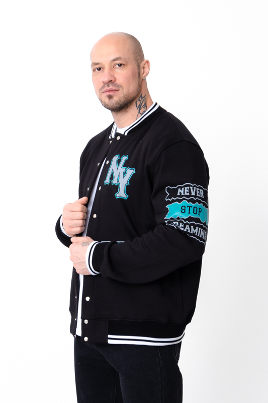 Стильний бомбер виконаний з однотонної трьохнитки, стане ідеальним доповненням до вашого гардеробу для весняного, осіннього та демісезонного періодів.Виготовлений у прямому крої, він гарантує комфорт і свободу рухів протягом усього дня. Основною особливістю цієї моделі є виразний принт, який додає молодіжного акценту. Застібка на кнопках робить одягання швидким та зручним, а манжети на рукавах, комірі та по низу бомбера мають еластичну вставку, що забезпечує гарне прилягання та захист від вітру.
