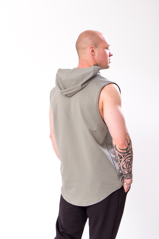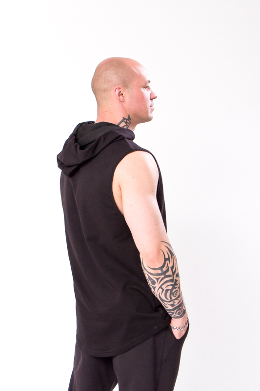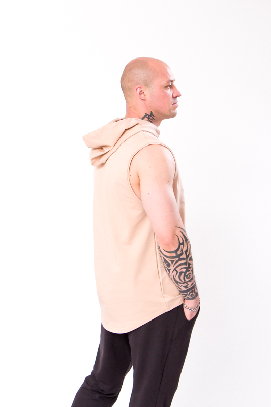 Тканина двонитка — це щільний, але дихаючий трикотаж, який добре зберігає тепло, не сковує рухів і приємний на дотик. Безрукавка має капюшон зі шнурками, який можна затягнути в разі потреби, забезпечуючи додатковий захист від вітру. Завдяки функціональним кишеням ви зможете завжди мати під рукою дрібниці, як-от телефон або ключі, що додає виробу зручності в повсякденному використанні.