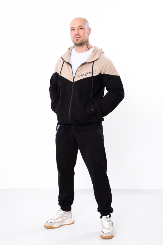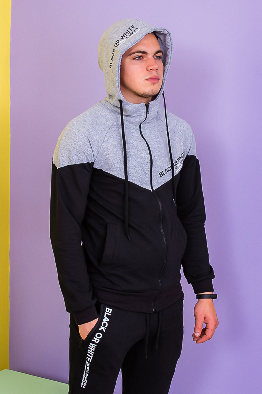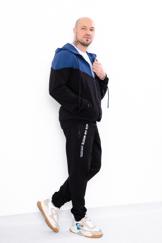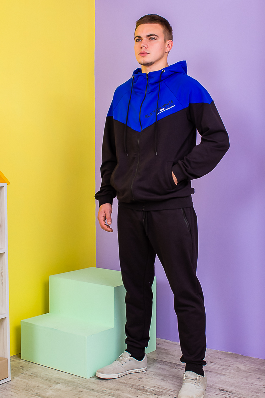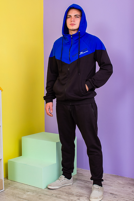 Дана модель спортивного костюму пошита для молоді, для чоловіків яким подобається фасон в приталенному стилі. Штани мають звужений крій, еластичні манжети, регульований внутрішній шнурок на поясі. Дві косих бічних кишені на брюках. Куртка з центральною застібкою на блискавку. Капюшон, який регулюється по об»єму шнурком. Не кошлатиться, тримає форму. Виріб декорований термотрансферною печаткою. Спортивні костюми від інтернет - магазину «Трикотажний Край» відшиваются на новітньому обладнанні, використовуються сучасні матеріали для пошиття! Зайшовши на наш сайт, ви можете подивитися всі моделі костюмів і багато іншого одягу!