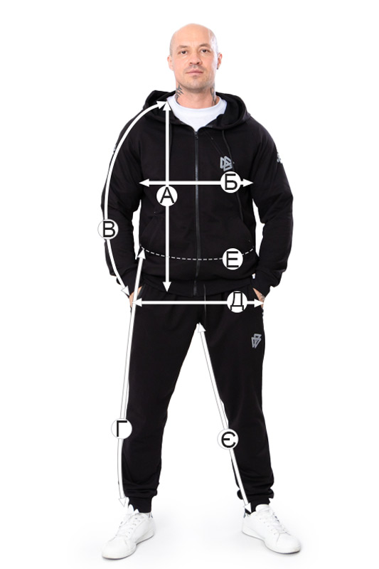 | Є - Довжина штанів по кроковому шву, +/-2см | 82 | 82 | 82 | 83 | 83 | 83 |