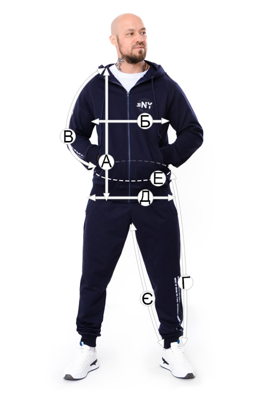 | Є - Довжина штанів по кроковому шву, +/-2см | 82 | 82 | 82 | 83 | 83 | 83 |