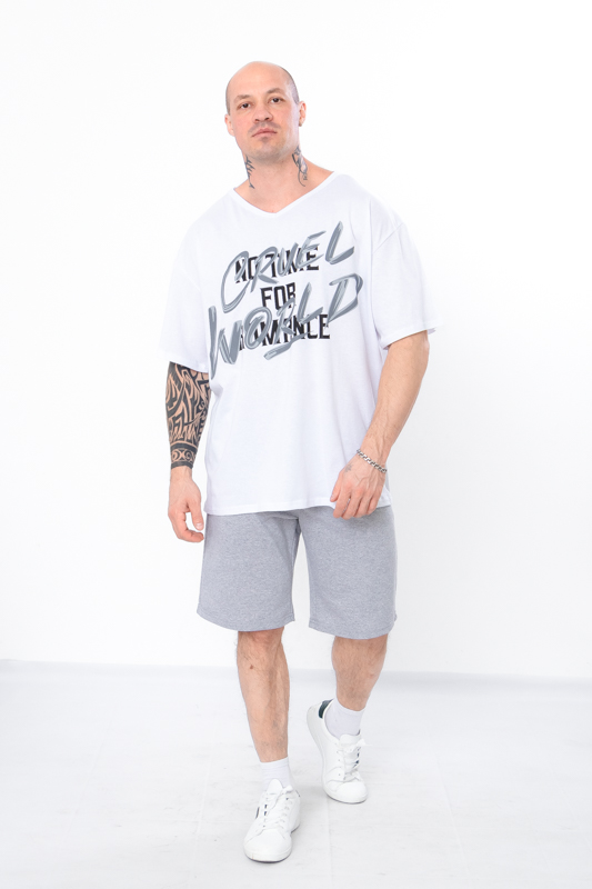 Стильний та зручний комплект складається з футболки oversize та бриджів. Футболка має вільний крій, короткі рукава зі спущеною лінією плечей. Бриджі на широкій резинці, мають дві кишені по бокам. В якості декору принт на футболці. Комплект пошитий з однотонної двонитки. Полотно гарної якості. Тому, при правильному догляді, комплект можна буде носити не один сезон. Може давати усадку після прання.