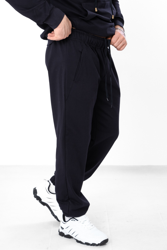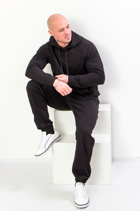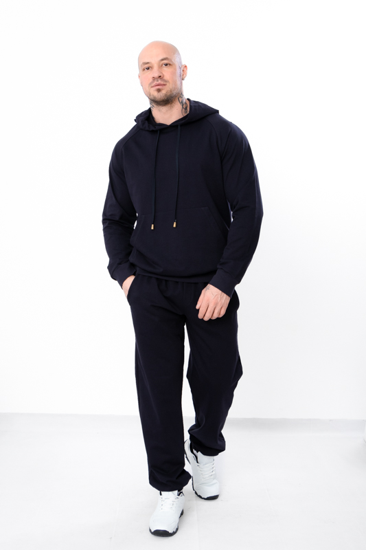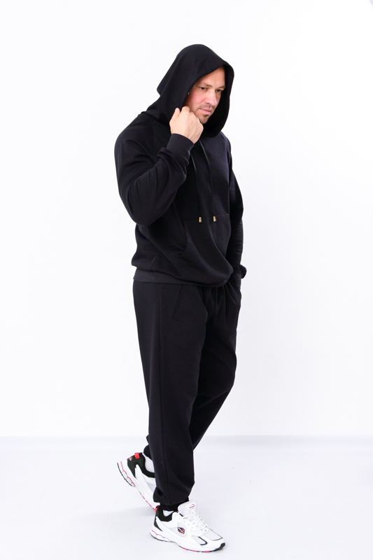 ТМ "Трикотажний Край" представляє вашій увазі зручну модель чоловічого костюму, який складається з худі та джогерів. Худі з капюшоном, штани вільного крою, трохи завужені до низу, мають два кармани. Пояс на еластичній резинці, для зручності всередині вставлений шнурок. Низ штанів також на резинці. Полотно гарної якості. Тому, при правильному догляді, його можна буде носити не один сезон. Може давати усадку після прання.