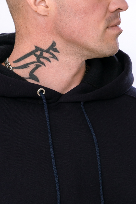 Худі має вільний крій, зручний капюшон зі шнурками для регулювання, а також має кишеню-«кенгуру» для додаткового комфорту. Манжети на рукавах та по нижньому краю утримують тепло та надають виробу охайного вигляду.