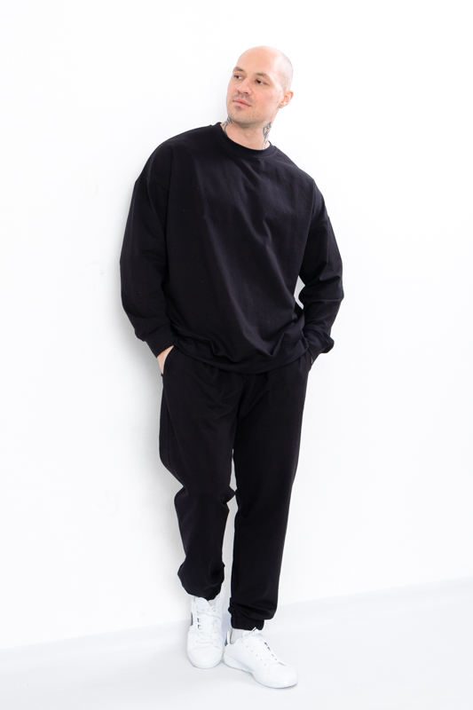 Стильний та зручний костюм складається з джемперу та штанів. Джемпер має вільний крій, округлу горловину, лінія плечей спущена. Штани на широкій резинці з кишенями по бокам. Знизу на штанах манжети з резинкою. Костюм пошитий з однотонної двонитки. Полотно гарної якості. Тому, при правильному догляді, його можна буде носити не один сезон. Може давати усадку після прання.