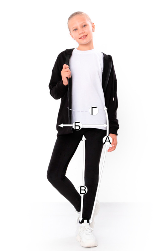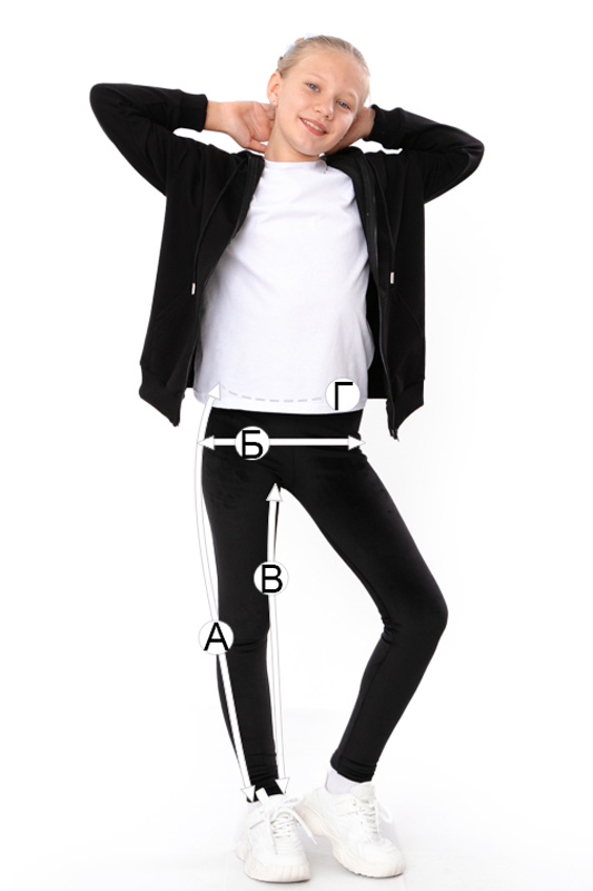 | А - Довжина лосин по бічному шву, +/-2см | 48 | 52 | 56 | 59 | 63 | 67 | 71 | 75 | 79 | 83 | 87 | 91 | 94 | 100 |