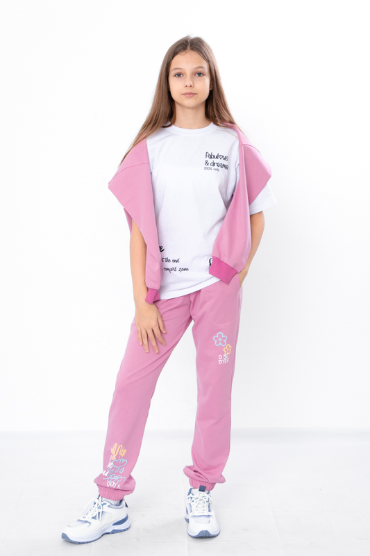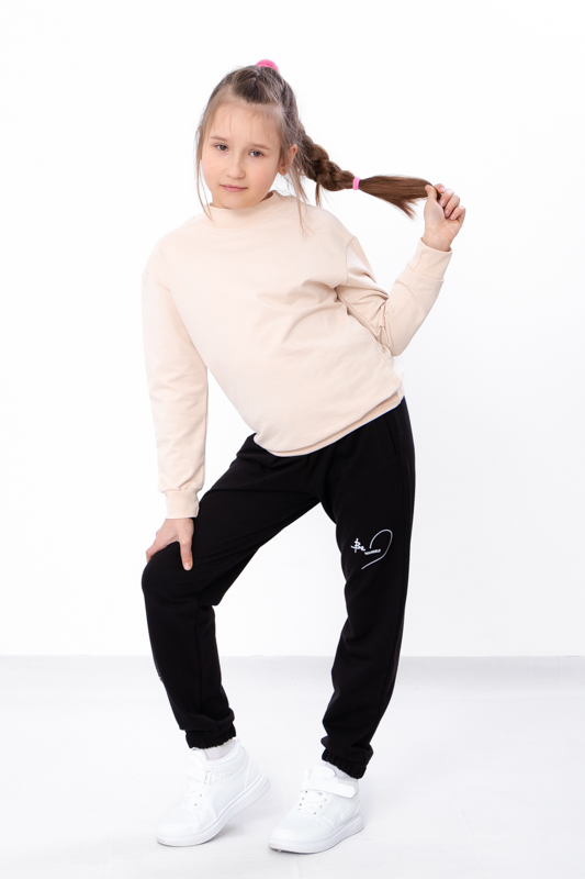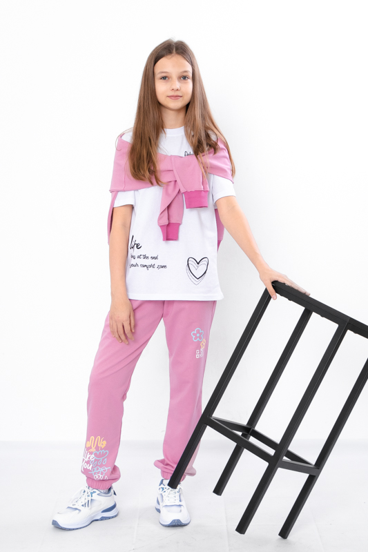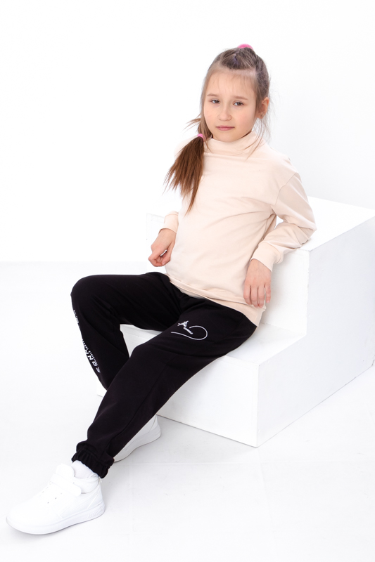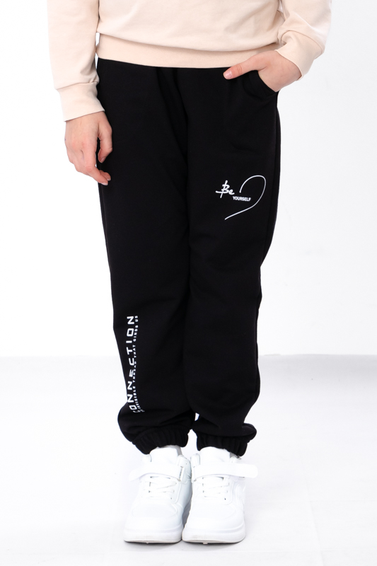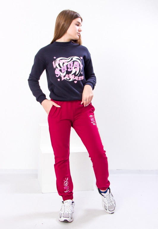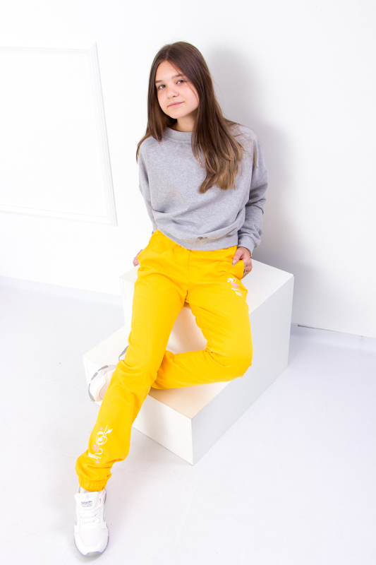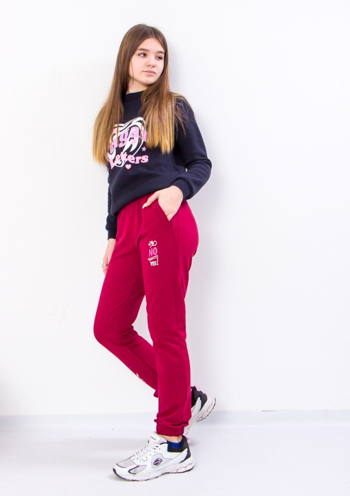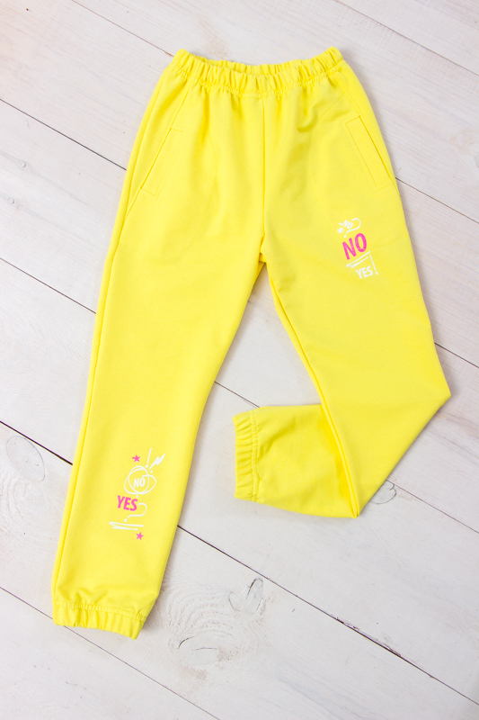 Модель виконана з полотна - двонитка. Трикотаж мало мнеться, відрізняється своїм повітрообміном. Пояс штанів та нижня частина на резинці. Штани доповнені кишенями для зручності. Модель прикрашена принтом. Спортивні штани відмінно підійдуть для занять фізкультурою, а також для активного відпочинку, поїздок на природу і для використання в якості домашнього одягу.