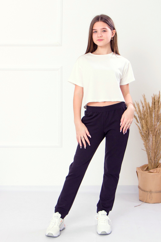 Модель виконана з полотна - двонитка. Трикотаж мало мнеться, відрізняється своїм повітрообміном. Пояс штанів на резинці та нижня частина на манжеті. Штани доповнені кишенями для зручності. Спортивні штани відмінно підійдуть для занять фізкультурою, а також для активного відпочинку, поїздок на природу і для використання в якості домашнього одягу.Завдяки приємному до тіла матеріалу дитина почуватиметься комфортно протягом усього дня.