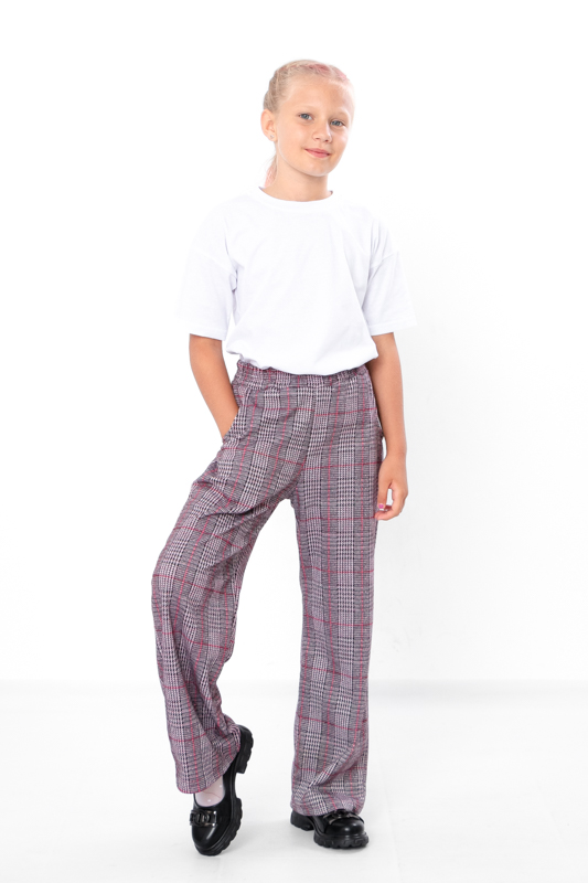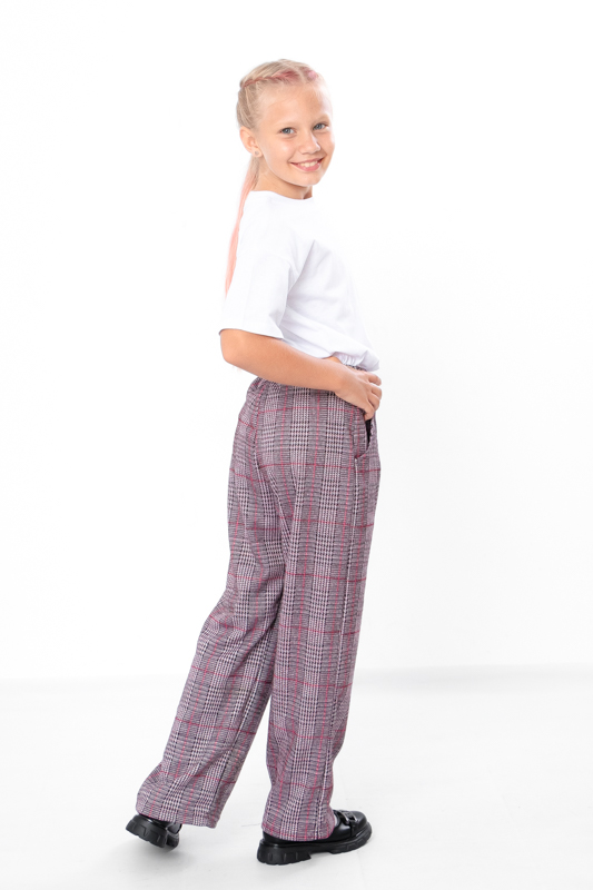 Стиль та зручніть - це те, що в собі поєднують штани-кюлоти з принтом "Клітинка". Ця модель широких штанів, має високу посадку, втачний пояс на широкій резинці, по бокам є кишені. Такі штани можна одягати в школу, на прогулянку, або на інший захід. Чудово поєднуються з однотонними футболками або блузами. Пошиті з полотна джерсі-жаккард. Полотно м’яке та еластичне.