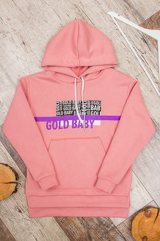 Стильна толстовка "GOLD BABY", створена фахівцями відомого українського бренду «Трикотажний Край», призначена для активних дітей. Завдяки вільному крою рухи не будуть обмежені, забезпечений абсолютний комфорт. Рукава і низ оброблені широкими трикотажними манжетами. Завдяки зручності, яскравого дизайну і незвичайним вирізам виріб відмінно поєднується не тільки зі спортивними штанами, але і з джинсами і чіносами. Капюшон захистить голову від холодного вітру. Тепла, зручна і практична толстовка зшита з бавовняного полотна з додаванням волокон поліестеру. Тому м'який і приємний на дотик матеріал володіє важливими перевагами: він відмінно зберігає тепло і відводить вологу, а також відрізняється міцністю, тому добре тримає форму і не розтягується навіть після численних прасувань, яскравий принт по переду і на спинці прідає особливого шику.