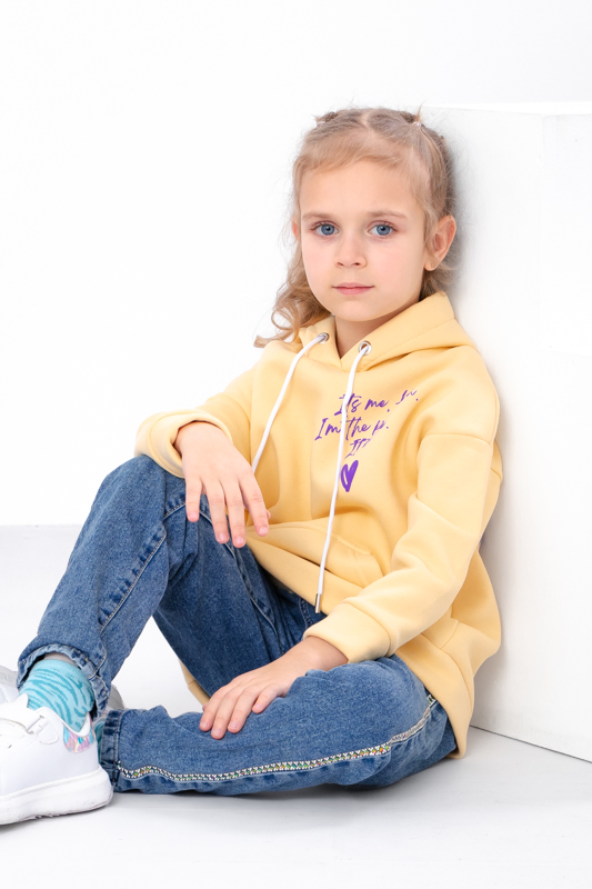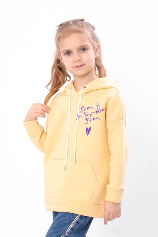 Стильне худі для дівчат із однотонної трьохнитки — ідеальний вибір для повсякденного носіння. Завдяки вільному крою, худі забезпечує максимальний комфорт та свободу рухів. Великий капюшон надає моделі спортивного вигляду, а містка кишеня "кенгуру" додає практичності.
