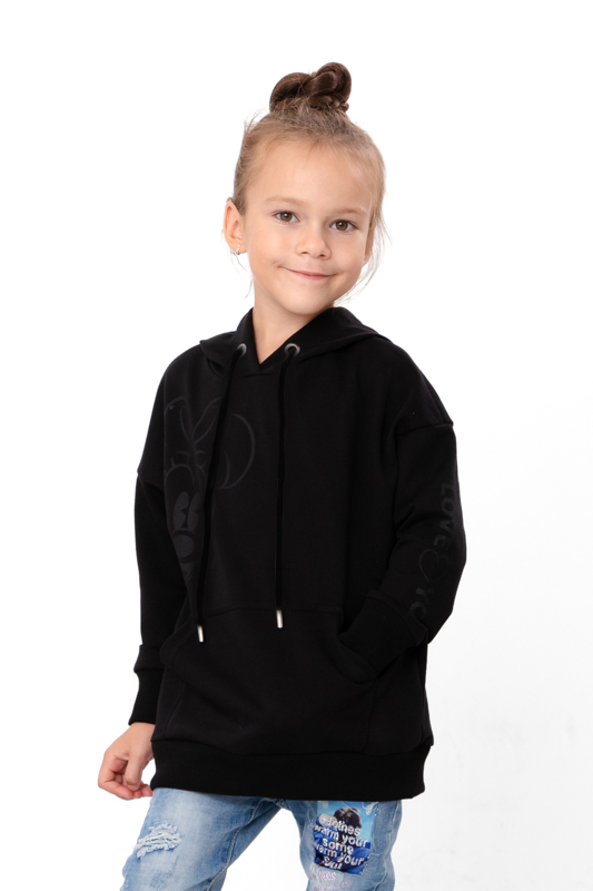 Худі для дівчинки з полотна двонитка — це ідеальне поєднання комфорту, стилю та практичності. Однотонний колір надає виробу стриманості та універсальності, а яскравий принт додає образу індивідуальності та характеру.