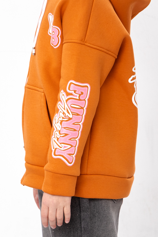 Крій худі продуманий для зручності та свободи рухів. Модель легко одягається, не створює відчуття скутості та дозволяє дитині активно рухатися протягом дня. Капюшон додає функціональності, забезпечуючи додатковий комфорт у прохолодну погоду та гармонійно доповнюючи загальний вигляд виробу. Він зручний у використанні та не заважає під час руху.