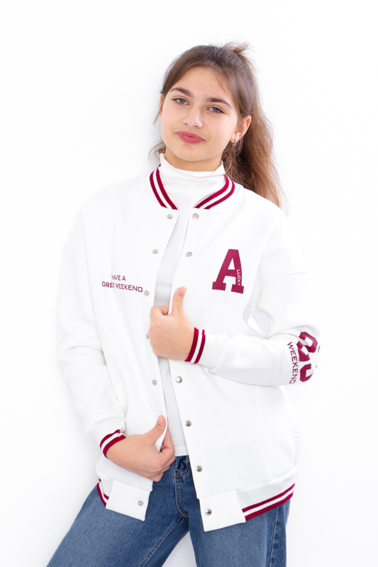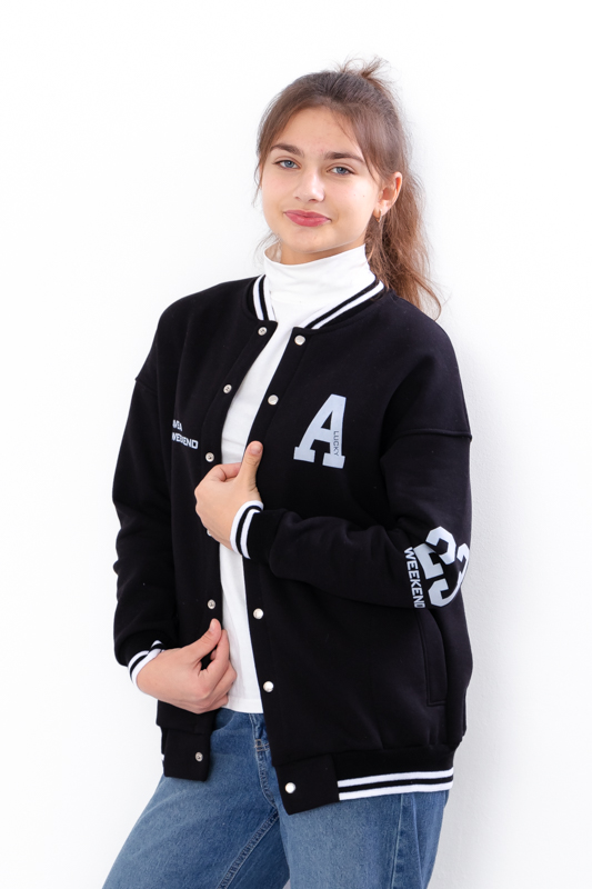 Бомбер з принтом від ТК — ідеальний вибір для стильних дівчаток. Цей бомбер поєднує в собі класичний дизайн і сучасні акценти, що робить його улюбленим елементом гардеробу. Виготовлен з високоякісної трьохнитки.