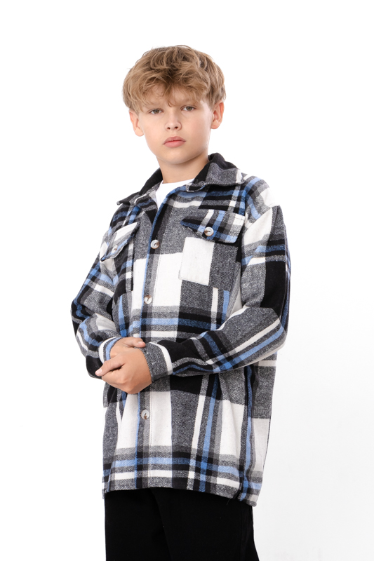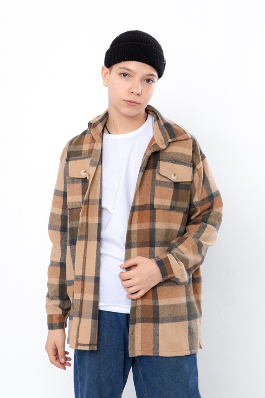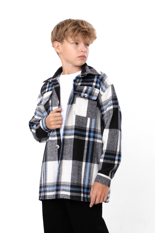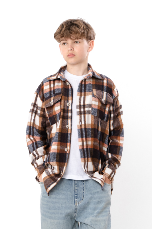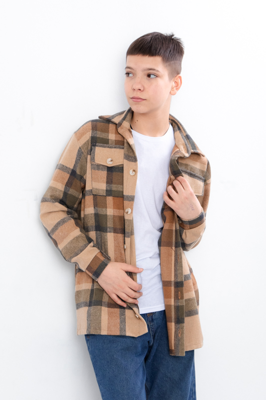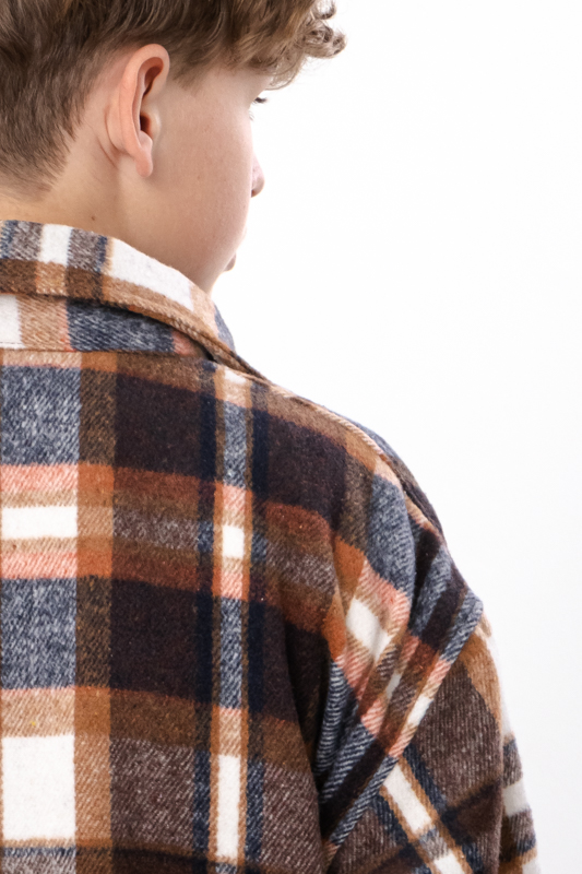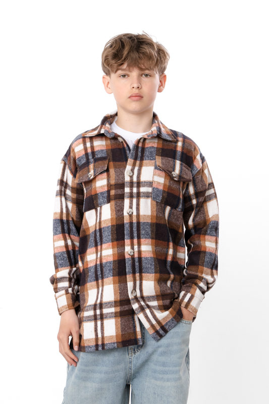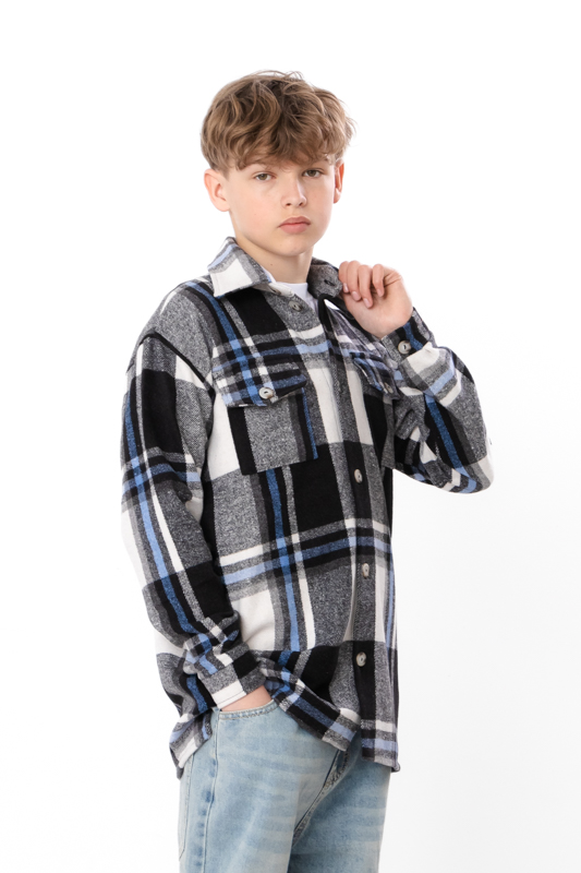 Стильна та комфортна сорочка для підлітків, виготовлена з м'якої та теплої байки у клітинку (70% поліестер, 30% віскоза). Байка відома своєю здатністю утримувати тепло, залишаючись при цьому дихаючою і приємною до тіла. Класичний крій сорочки дозволяє поєднувати її як з джинсами, так і зі спортивними штанами, підходить для школи чи повсякденного носіння.