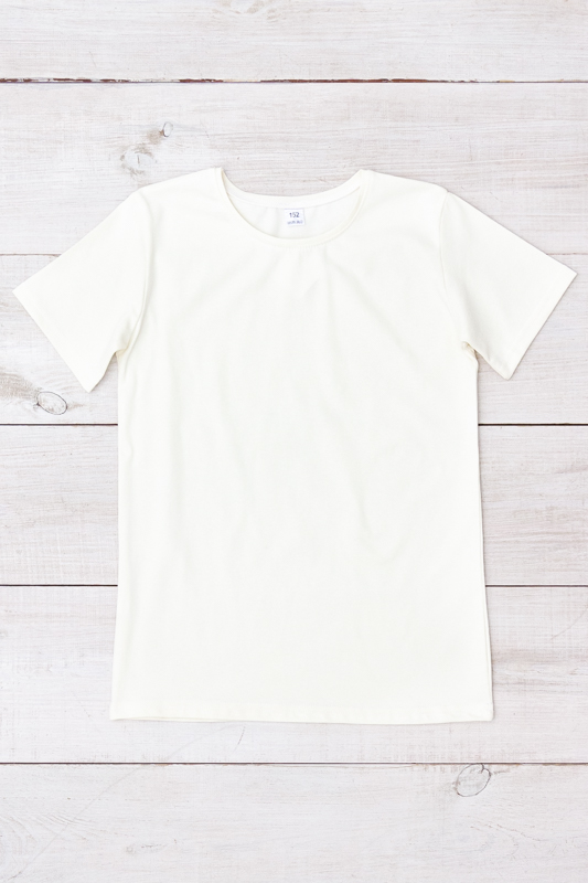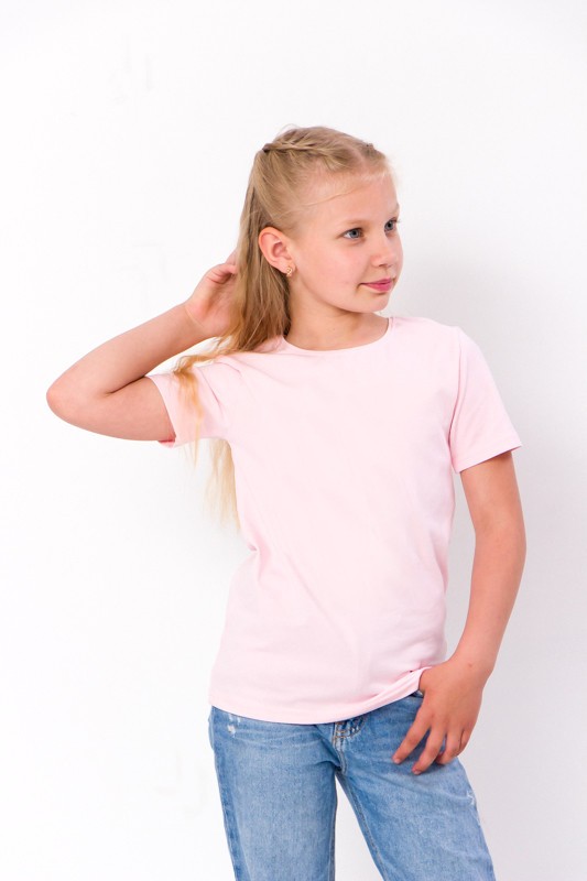Базова однотонна футболка для дівчаток з трикотажного полотна - фулікра. Пошита в декількох кольорах на будь-який смак. Футболка прямого крою з короткими рукавами та круглою горловиною. Можна поєднувати з джинсами, шортами, спідницями. Полотно гарної якості, при правильному догляді не дає усадку, не линяє, завдяки наявності еластану в складі не витягується.