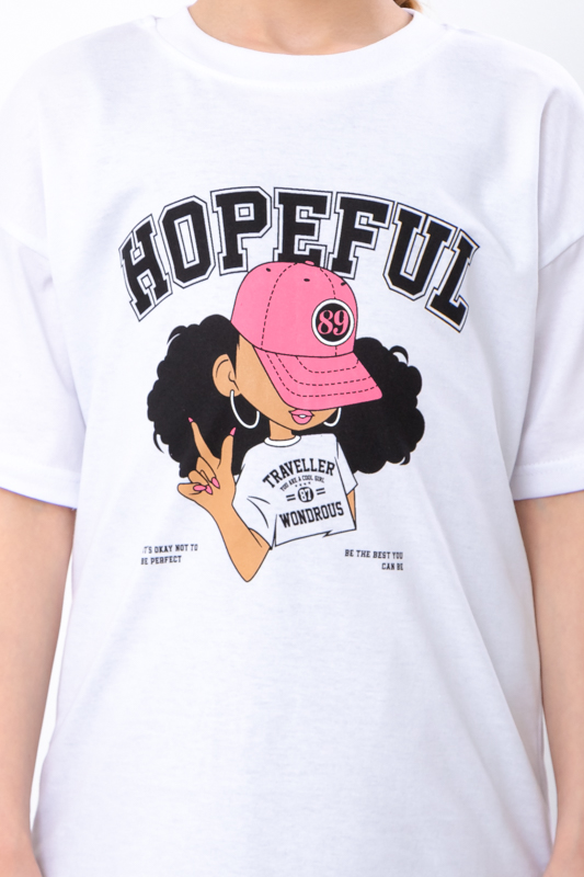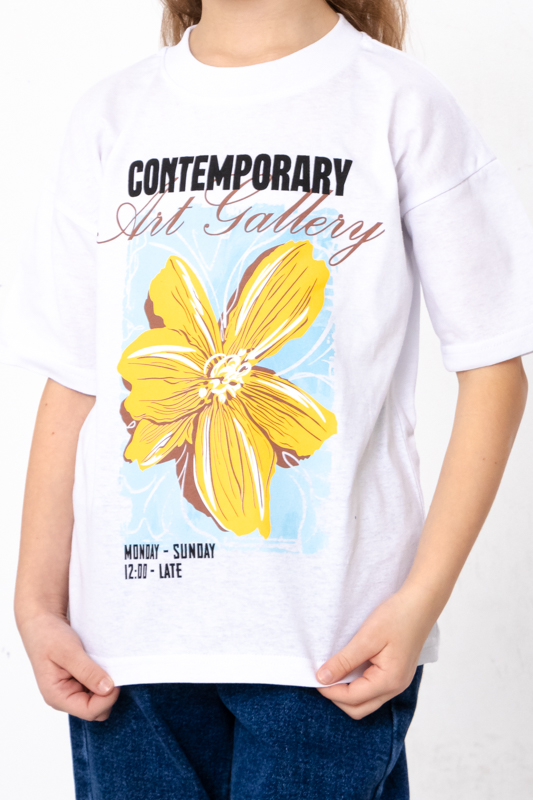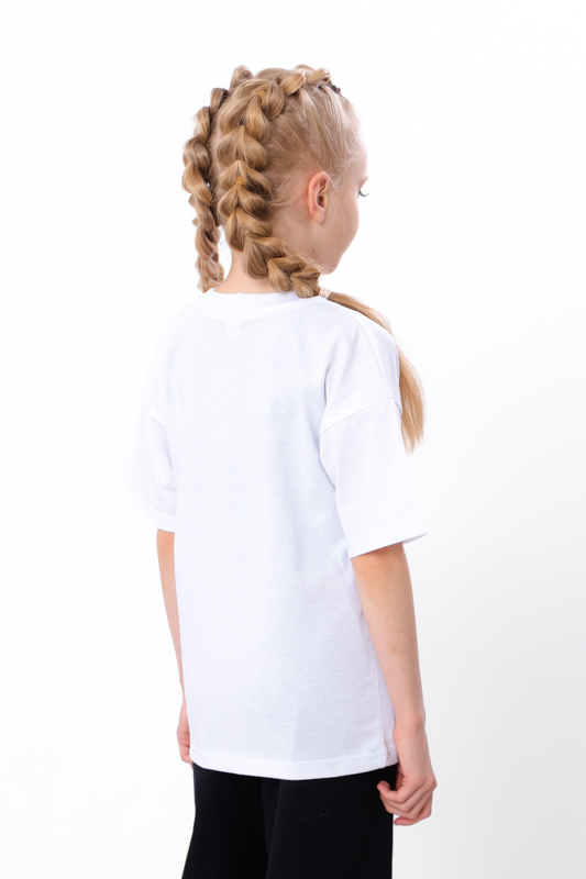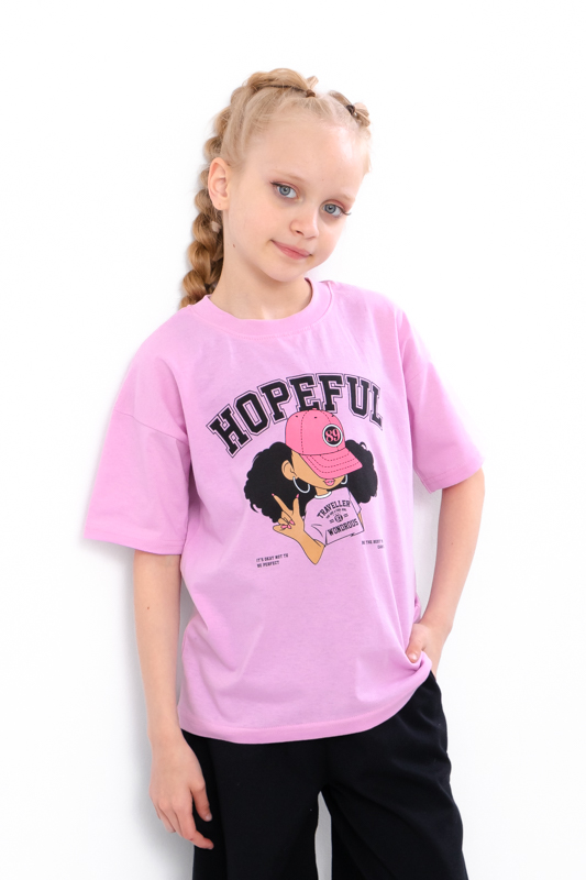 Футболка прикрашена стильним принтом з написом і зображенням — такий дизайн точно сподобається юним модницям. Яскраві кольори — додають настрою та легко поєднуються з улюбленими шортами, штанами або спідницями.