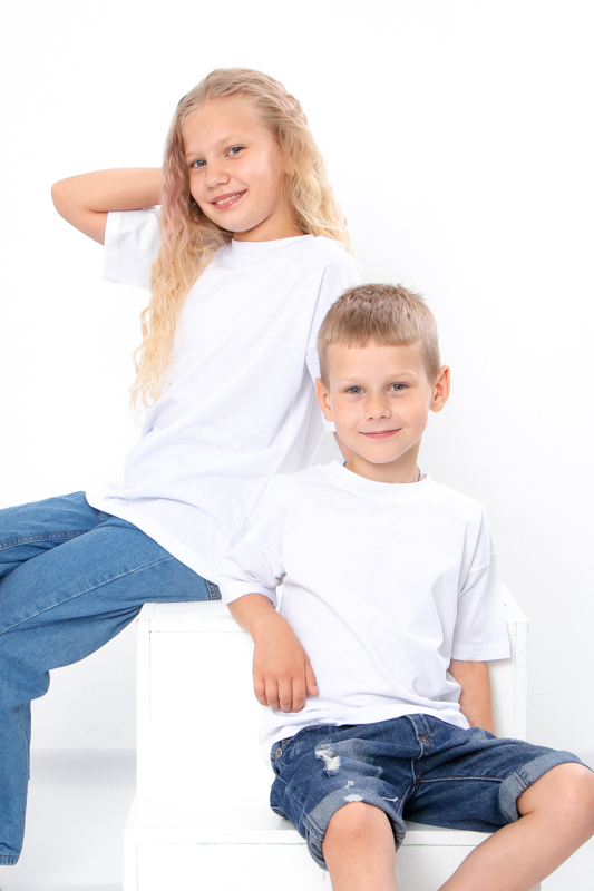 Класична біла футболка з легкого дихаючого полотна – кулір. Футболка прямого крою з короткими рукавами та округлою горловиною. Універсальна річ в гардеробі дівчаток і хлопчикі. Підходить для занять фізкультурою та повсякденного носіння. Полотно натуральне за складом, легке - ідеальний варіант для спекотної погоди. Може давати невелику усадку після прання.