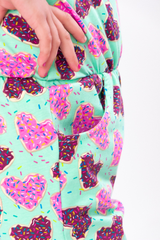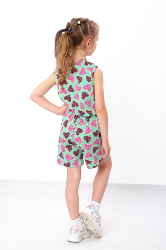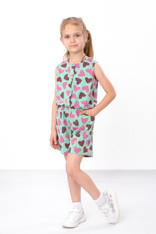 Комбінезон з принтованої фулікри, який обов'язково сподобається дівчатам. Спереду застібається на гудзики, на поясі є резиночка. Полотно відмінної якості, при правильному догляді не дає усадку, завдяки наявності еластану в складі не витягуєтьтся.