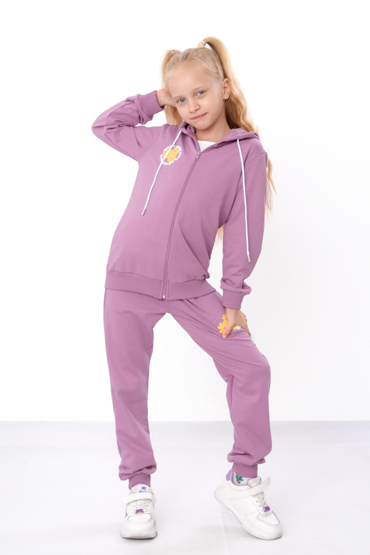 Комплект складається з кофти на блискавці з капюшоном та зручних штанів із м’яким поясом на резинці. Манжети на рукавах і штанинах додають комфорту та дозволяють виробу надійно триматися на фігурі, не сковуючи рухів. Такий костюм — ідеальний варіант для прогулянок, занять у дитячому садку, активного відпочинку чи домашнього вжитку.