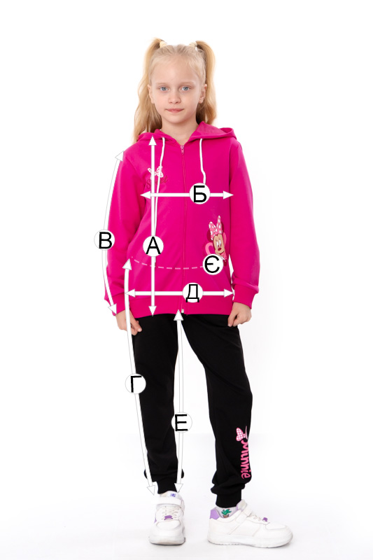 Комплект складається з кофти на блискавці з капюшоном та зручних штанів із м’яким поясом на резинці. Манжети на рукавах і штанинах додають комфорту та дозволяють виробу надійно триматися на фігурі, не сковуючи рухів. Такий костюм — ідеальний варіант для прогулянок, занять у дитячому садку, активного відпочинку чи домашнього вжитку.