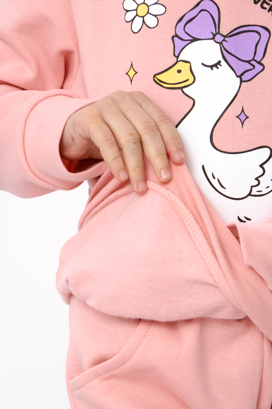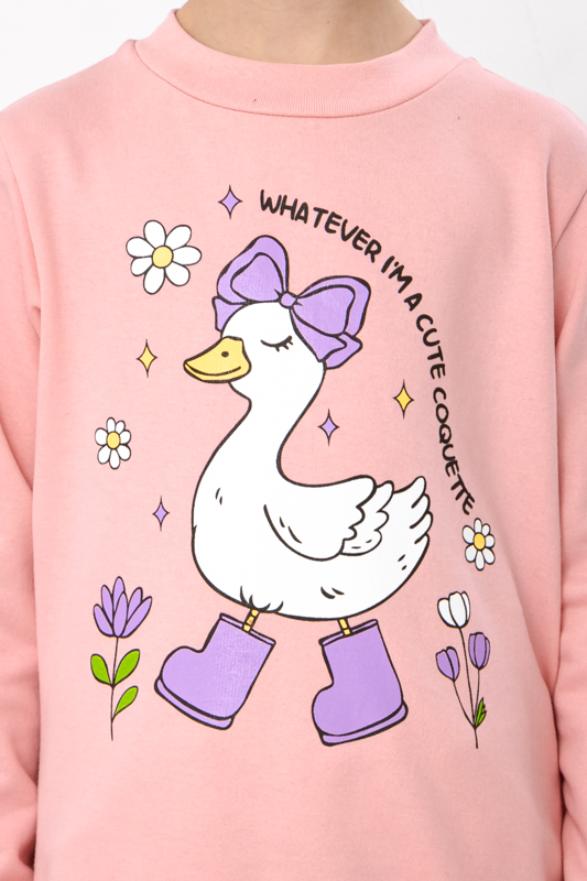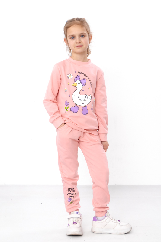 Вільний і зручний комплект із світшоту та брюк з оригінальним принтом - те, що потрібно активній дитині. Джемпер з круглим вирізом горловини і штани вільного крою доповнені широкими еластичними манжетами. Для пошиття моделі використовувалося високоякісне бавовняне полотно-футер, що є безпечним для чутливої шкіри дитини. В період міжсезоння в такому костюмі дитині буде тепло і комфортно, він чудово підходить в якості домашнього одягу, наряду для ігор і прогулянок, забезпечує модний і стильний вигляд, не обмежує рухів активної дитини.