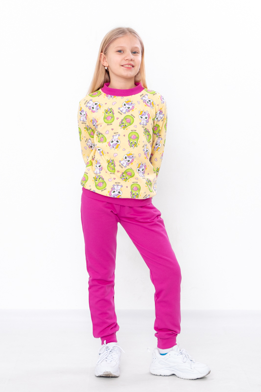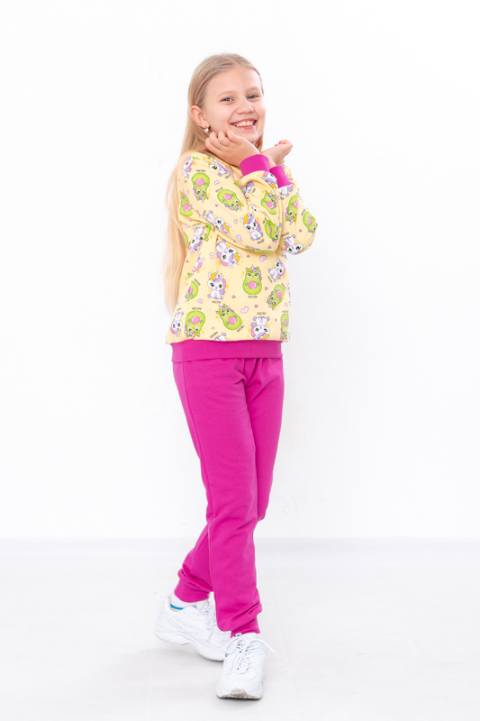 Спортивний костюм - універсальна деталь дитячого гардеробу, яка призначена не тільки для активного проведення часу, але і для подорожей, прогулянок на свіжому повітрі та інших захоплюючих заходів. Спортивний костюм від бренду "Tрикотажний Край" складається з кофти і штанів вільного крою. Вони виготовлені з якісного, щільного полотна - футер, який володіє всіма необхідними для дитячого одягу властивостями. Матеріал вільно пропускає повітря, швидко випаровує вологу, не деформується після прання. Універсальна тканина не електризується і не викликає алергічних реакцій на чутливій шкірі. Футболка з круглим вирізом горловини і штани вільного крою доповнені широкими еластичними манжетами. Штани з кишенями добре сідають по фігурі і забезпечують повний комфорт під час активних рухів дитини.