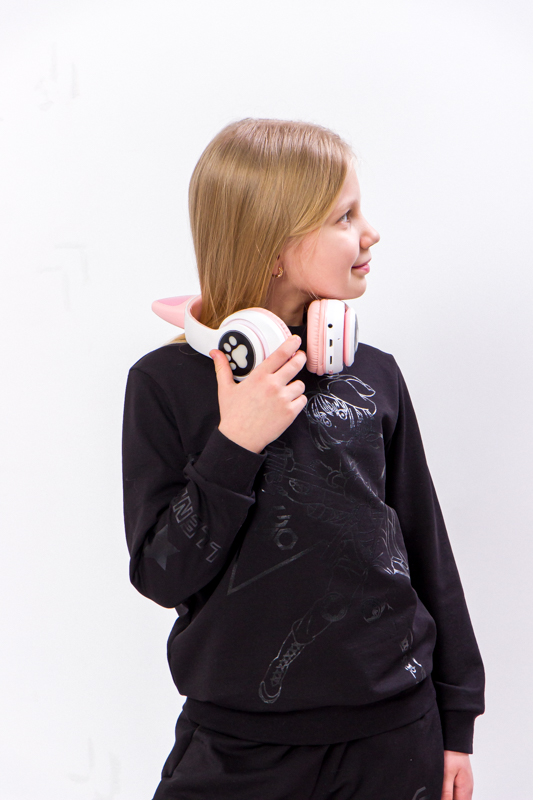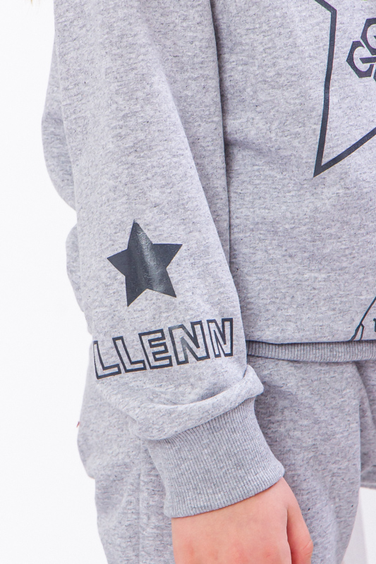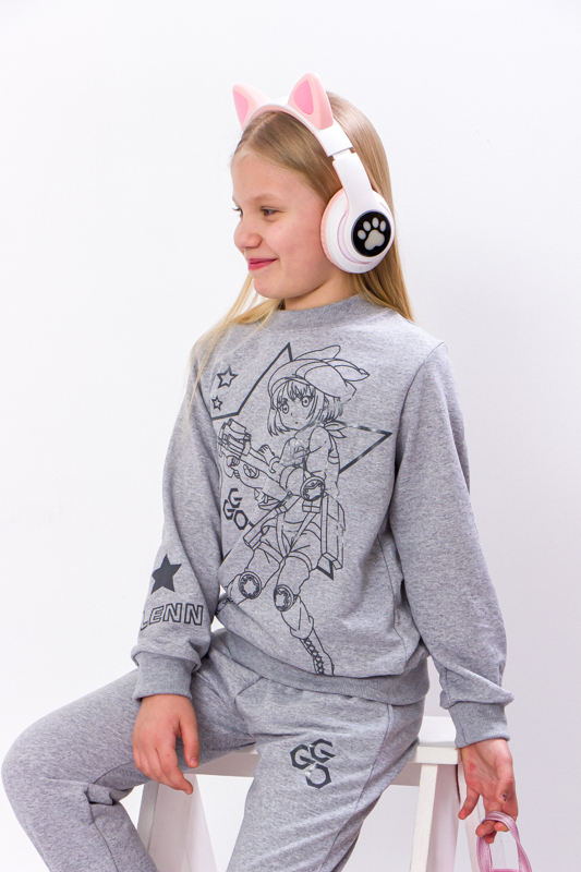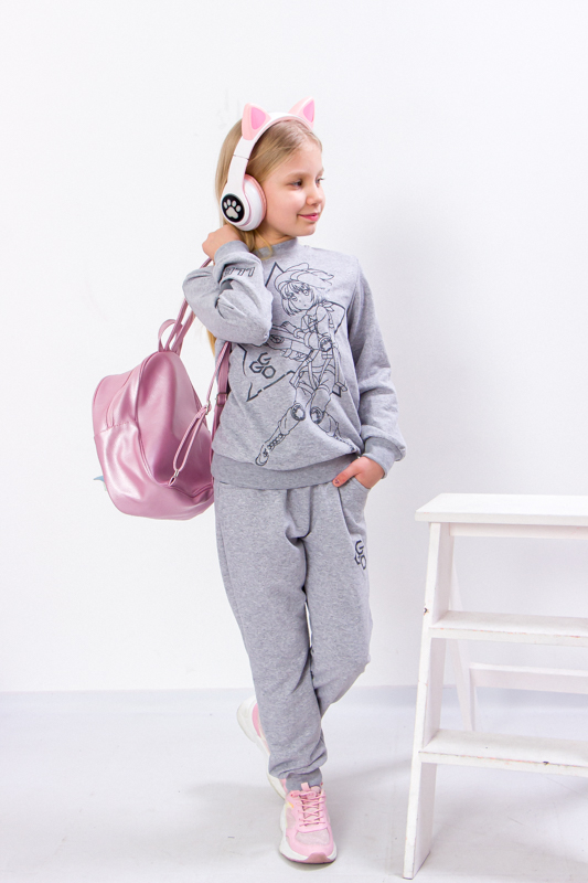 Спортивний костюм для дівчинки створений дизайнерами українського бренду «Трикотажний Край». Комплект універсальний, оскільки його можна використовувати як для фізичних вправ, так і для прогулянок на свіжому повітрі в період міжсезоння. Штани вільного крою, завдяки еластичній гумці вони міцно фіксуються на лінії талії. Низ, горловина і довгі рукава кофти оброблені широкими трикотажними манжетами. Для пошиття костюма використано натуральне бавовняне полотно, в складі якого також містяться волокна синтетичного еластану. Така тканина найбільше підходить для створення дитячих речей, оскільки володіє важливими характеристиками: повітропроникністю, гігроскопічністю, міцністю, еластичністю і зносостійкість.