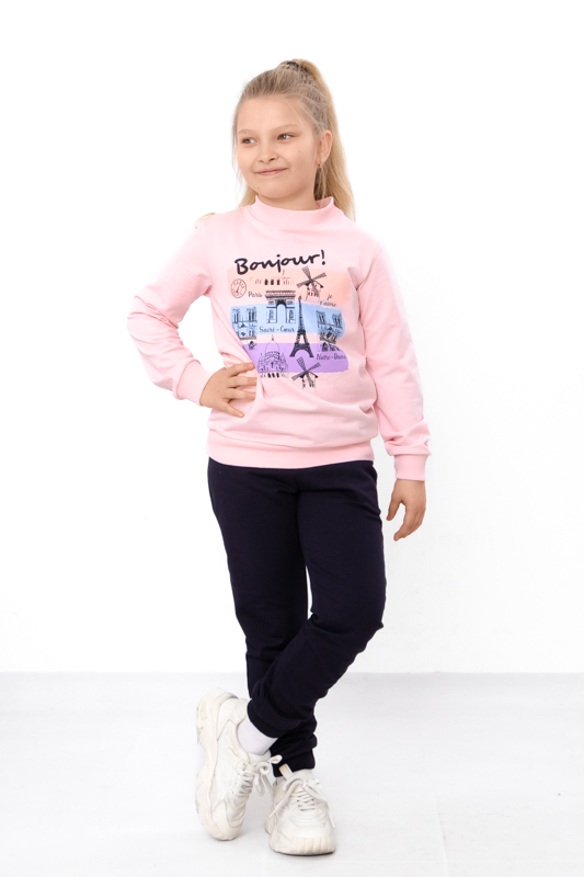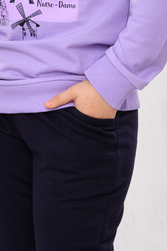 Комплект зазвичай складається зі зручного світшота та штанів, які гармонійно доповнюють один одного. Верх має комфортний крій, що не обмежує рухів, а манжети на рукавах і по низу додають акуратності та зручності. Штани мають еластичний пояс, який добре фіксується та забезпечує комфортну посадку.