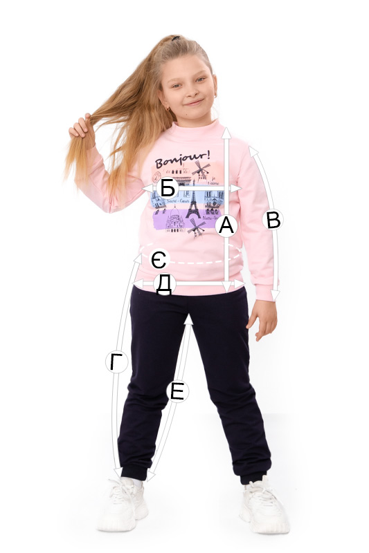 | Г - Довжина штанів по бічному шву, +/-2см | 60 | 64 | 67 | 71 | 75 | 79 | 81 |
