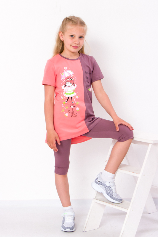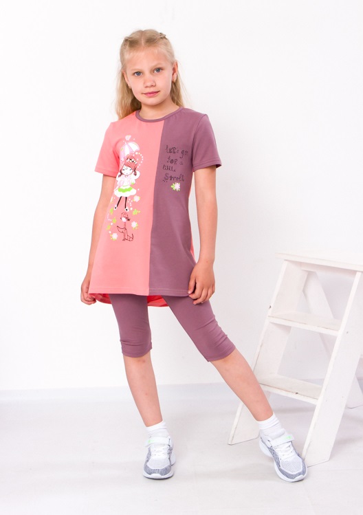 Стильний комплект для дівчаток з фулікри, складається з туніки та тресів. Туніка пошита в поєднанні двох кольорів, має короткі рукава, спереду нанесений принт. Треси на резинці довжиною нижче коліна. Полотно високої якості, не линяє, не дає усадку при правильному догляді, після прання не втрачає яскравості, завдяки наявності еластану в складі не витягуєтьтся.