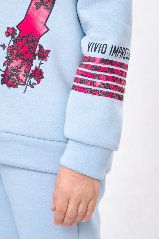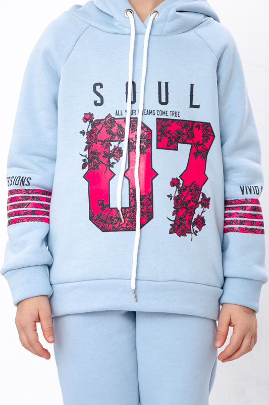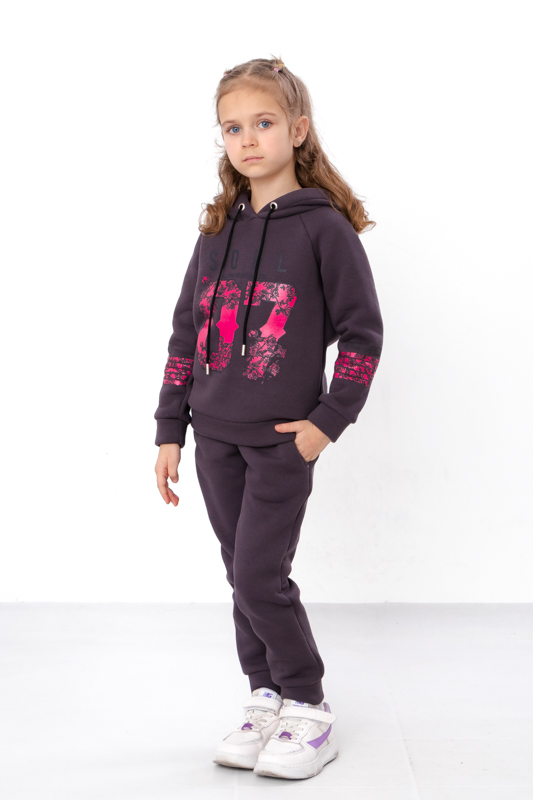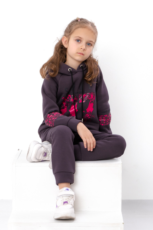 Костюм для дівчинки стане улюбленим елементом її гардеробу. Кофта з капюшоном, прикрашена принтом на грудях та рукавах, що надає костюму модного вигляду. Штани мають зручні кишені та регулюються шнурками на поясі, забезпечуючи ідеальну посадку та комфорт під час руху. Виготовлений з м'якої та якісної тканини - трьохнитка (80% бавовна, 20% поліестер), цей костюм підходить для активного відпочинку та повсякденного носіння.