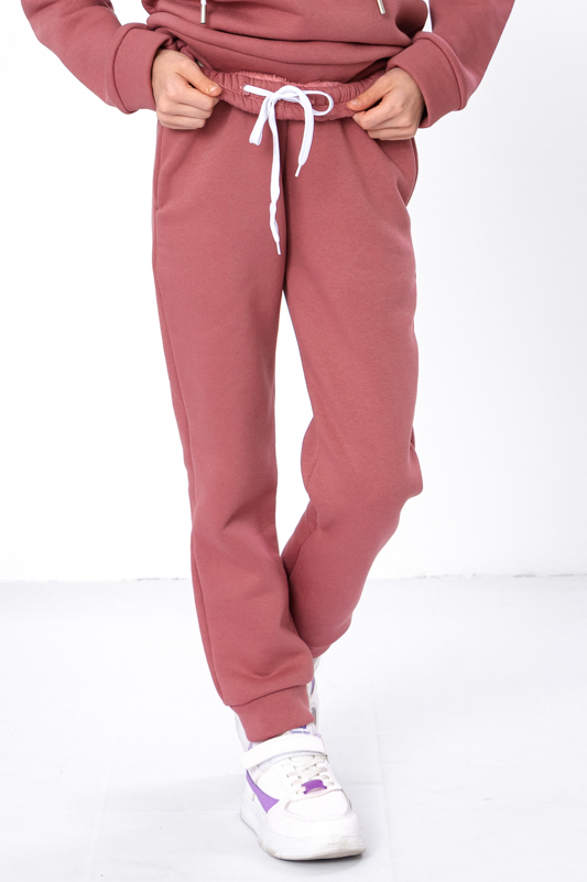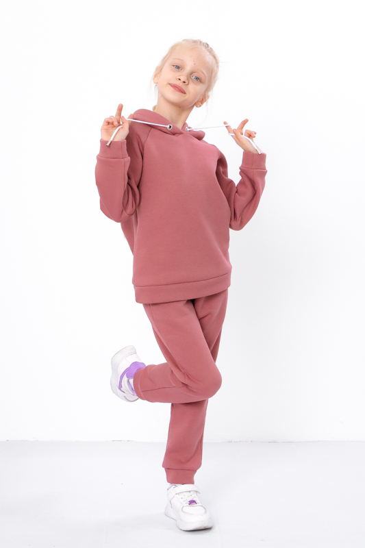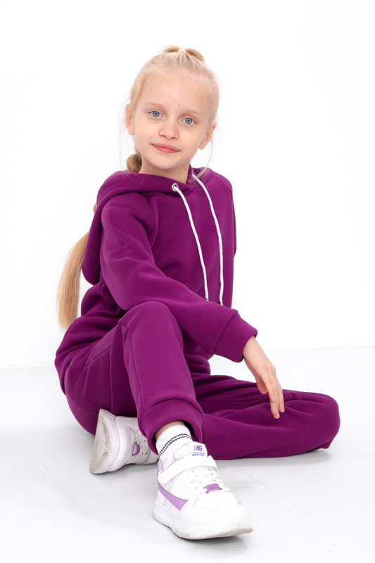 Костюм для дівчинки стане улюбленим елементом її гардеробу. Кофта з капюшоном, що надає костюму модного вигляду. Штани мають зручні кишені та регулюються шнурками на поясі, забезпечуючи ідеальну посадку та комфорт під час руху. Виготовлений з м'якої та якісної тканини - трьохнитка (80% бавовна, 20% поліестер), цей костюм підходить для активного відпочинку та повсякденного носіння.
