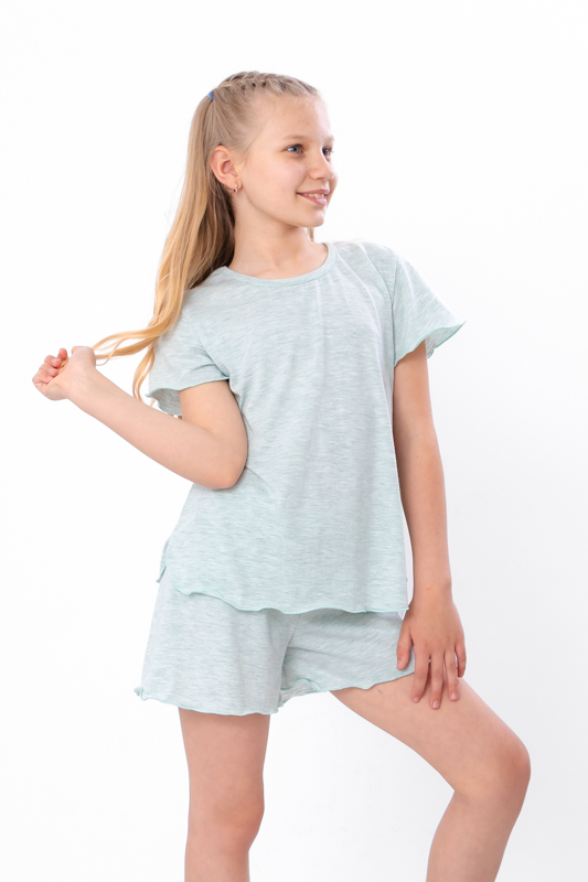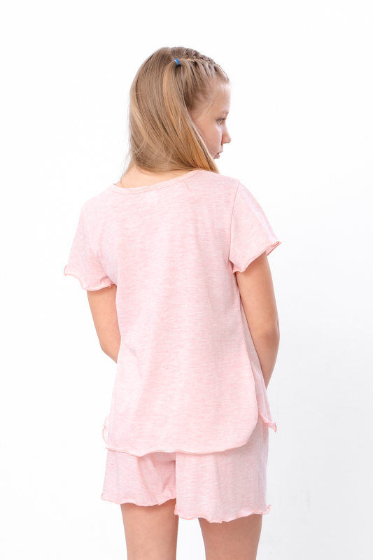 Футболка має класичний крій — не надто вільна і не занадто облягаюча, що дозволяє дитині рухатися вільно та зручно. Короткі рукавчики не обмежують рухів, а круглий виріз легко проходить через голову. Шорти доповнюють образ, мають м’який пояс на резинці, що не тисне на животик, та зручну довжину для активного способу життя дівчинки.