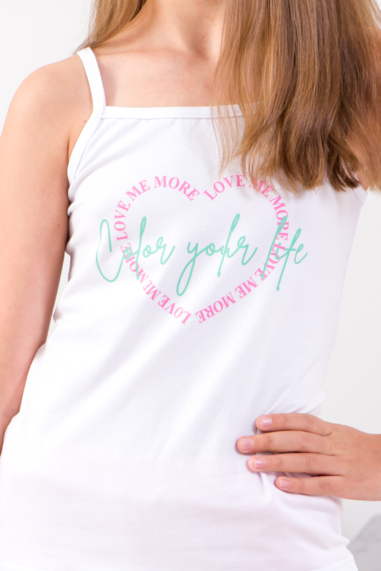 Топ виконаний з однотонної фулікри та оздоблений лаконічним, але ефектним принтом, що гармонійно поєднується з малюнком на шортах. Він має зручний фасон, який підкреслює сучасний молодіжний стиль. Завдяки натуральному складу тканини топ приємний у носінні, не сковує рухів і дарує відчуття свободи.
