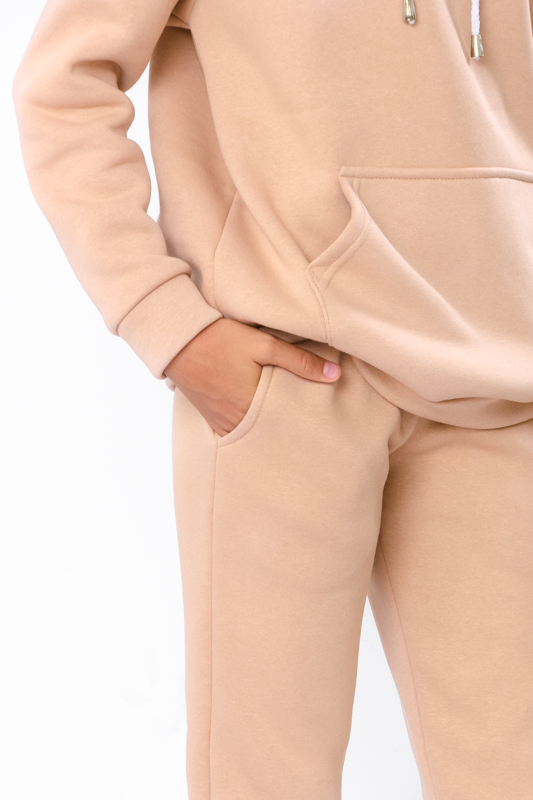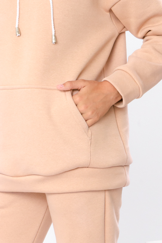 Костюм з триниткого футеру з начосом - найкращий варіант на прохолодну пору року. Ідеально продумана модель стане незамінною річчю в вашому гардеробі. Це одяг, який стане у пригоді у різних життєвих ситуаціях. Худі з капюшоном зі спущеною плечовою лінією, манжетами на рукавах та з кишенею-кенгуру. Штани високої зручної посадки з кишенями та м'якими манжетами.