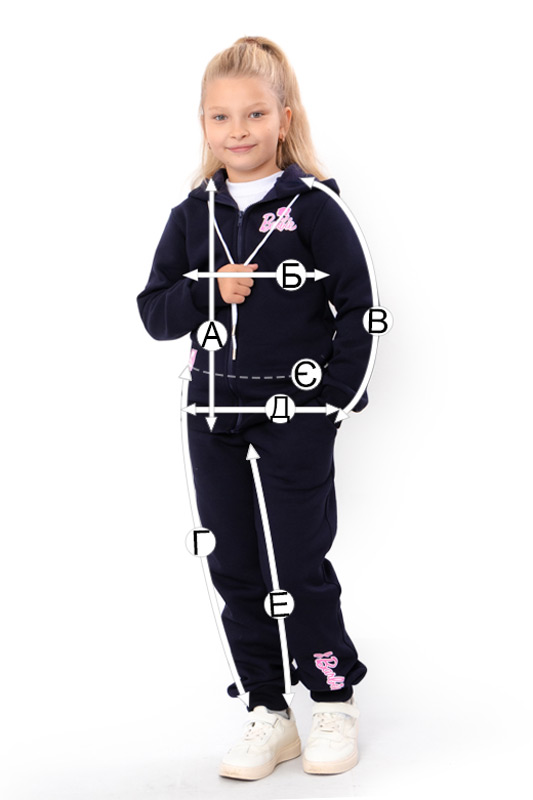 | Г - Довжина штанів по бічному шву, +/-2см | 61 | 65 | 69 | 73 | 77 | 80 |