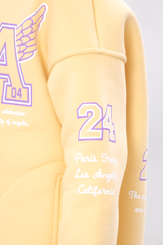 Догляд: машинне прання при температурі до 30°C на делікатному режимі. Сушити природним способом або при низькій температурі в сушарці. Прасувати при середній температурі, уникаючи ділянок із принтом.