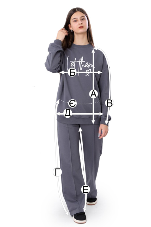 | Г - Довжина штанів по бічному шву, +/-2см | 82 | 85 | 89 | 93 | 96 | 99 | 102 |