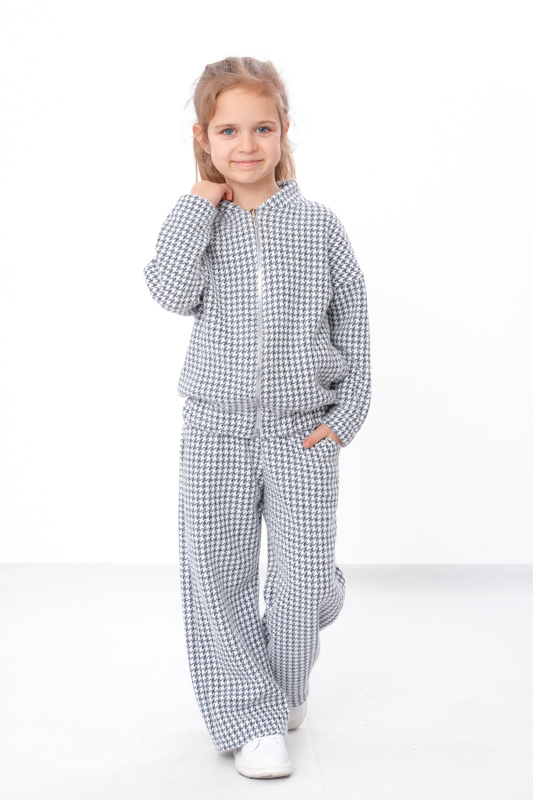 Дитячий костюм "Гусина лапка" – це поєднання стилю та комфорту для вашої дитини! Виготовлений із високоякісного трикотажу, костюм м'який, приємний до тіла та чудово зберігає форму навіть після численних прань. Особливості моделі: Модний принт "Гусина лапка" додає елегантності та оригінальності. ручна застібка-блискавка, еластичні манжети для кращої посадки. Вільний крій для свободи рухів, м'яка гумка на поясі, зручні кишені.Дихаюча тканина, що добре тягнеться та не викликає подразнень. Ідеально підходить для: Прогулянок, дитячого садка, школи або повсякденного носіння.