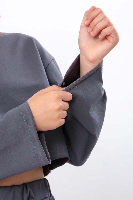 Кофта має сучасний дизайн: укорочена довжина додає образу легкості та трендовості, а класичні рукави забезпечують захист від вітру в прохолодні дні. Шорти мають зручну посадку на еластичному поясі, що добре тримається на талії та не сковує рухів. Наявність бокових кишень — це не лише функціональність, а й додатковий стильний акцент.