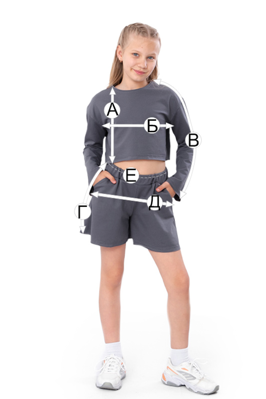 | Г - Довжина шортів по бічному шву, +/-2см | 31 | 32 | 32 | 33 | 34 | 35 |
