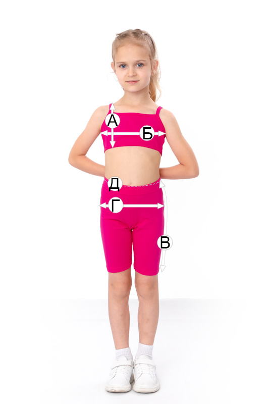 | В - Довжина велосипедок по бічному шву, +/-2см | 31 | 33 | 34 | 36 | 38 |